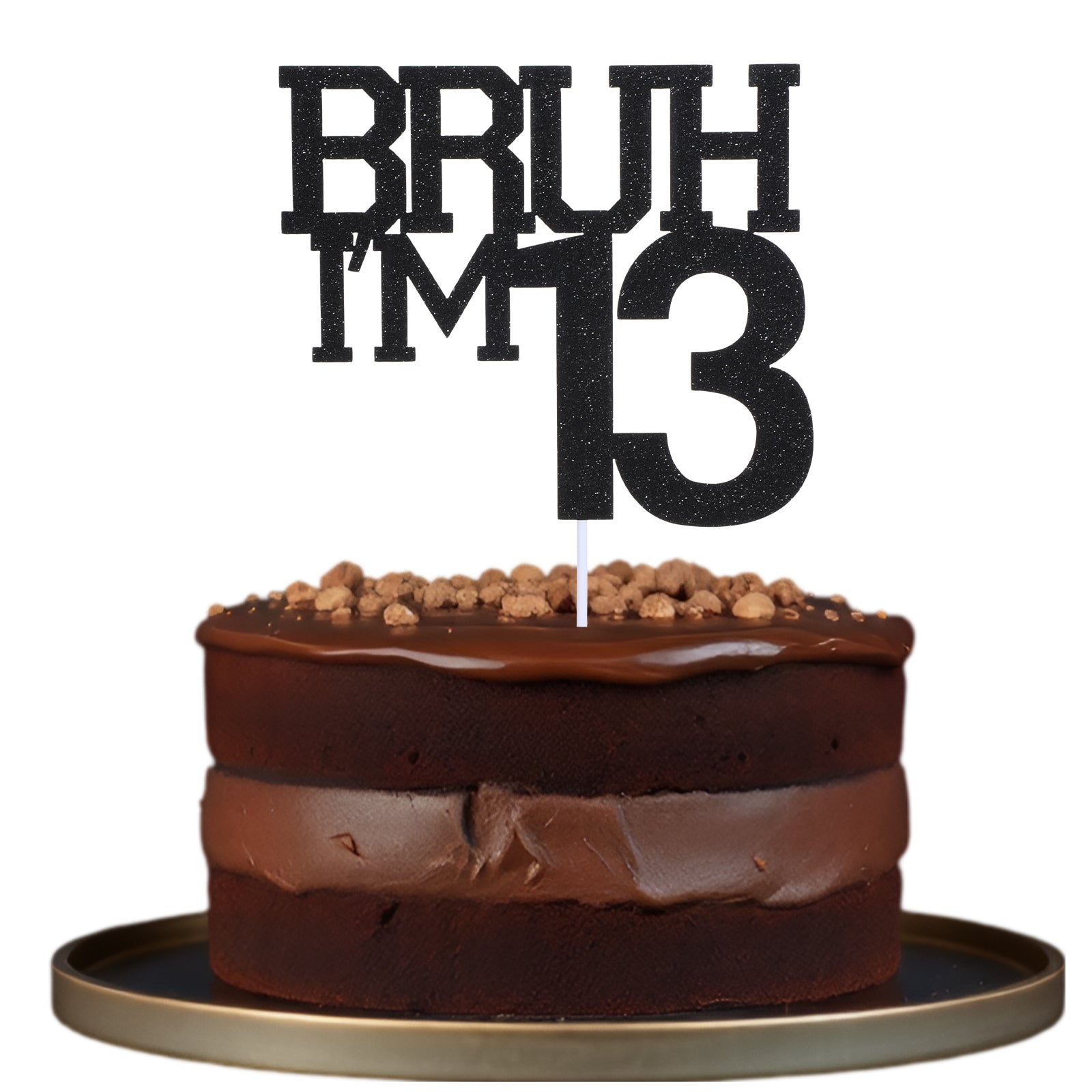 Celebrate the milestone of turning 13 with the bruh I'm 13 cake topper, a perfect addition to 13th birthday decorations for boy. This glitter funny 13th birthday cake topper is designed to make your big brother's 13 year old party decoration supplies stand out. Crafted with high-quality blue glitter, it adds a touch of sparkle and fun to your happy 13th birthday cake topper