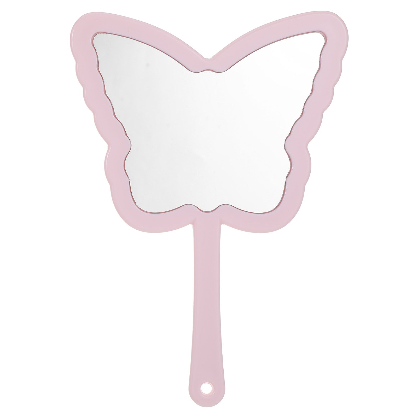 1 PCS Butterfly Shaped Hand Held Mirrors with Handle, Cute Cosmetic Travel Handheld Mirror, Single-Sided Portable Travel Vanity Lash Hand Held Mirror for Shaving Makeup Men & Women (Pink, 6 x 8 Inch)