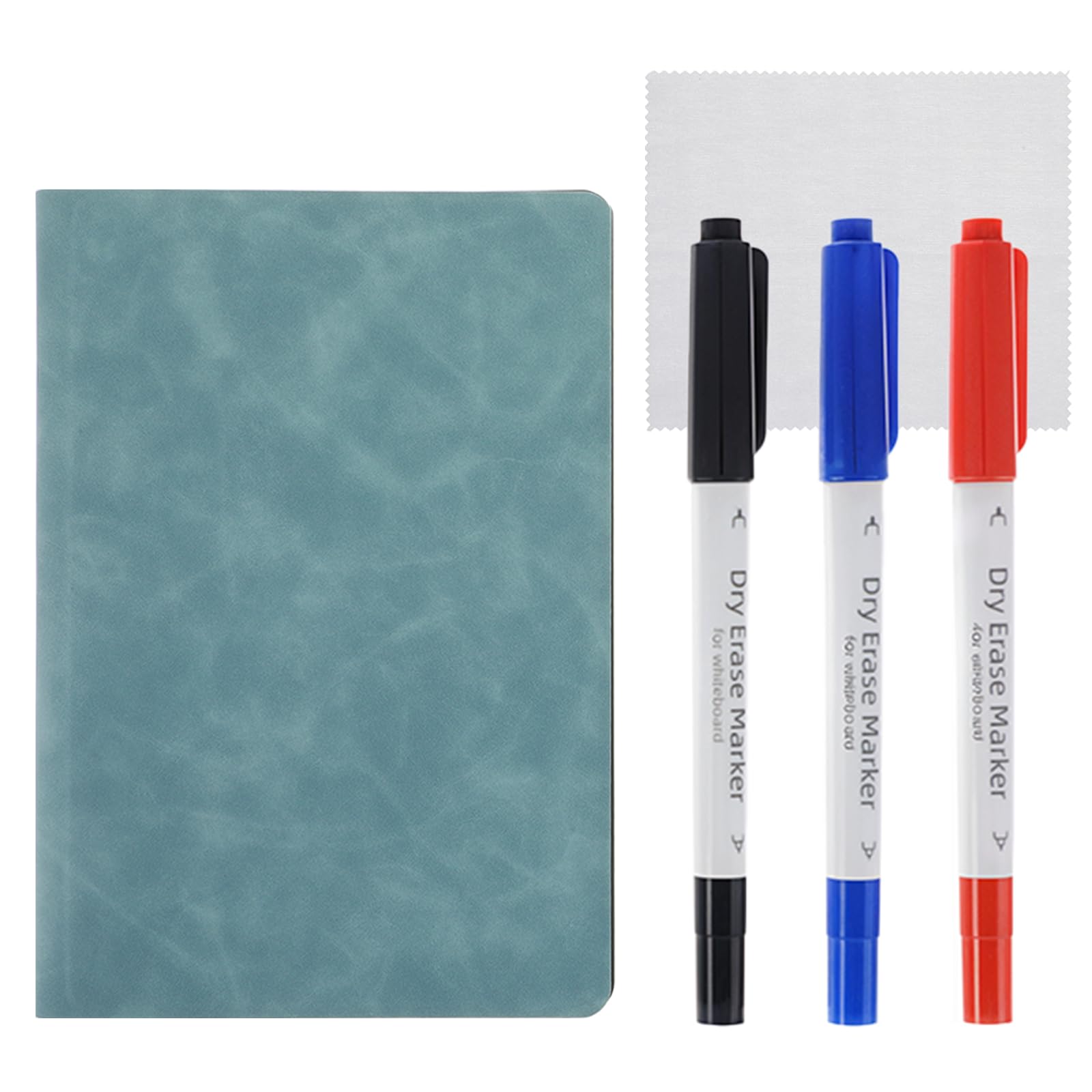 1 PCS Dry Erase Notebook Whiteboard Notebook Reusable Notepad A5 Portable Dry Erase Pad with PU Cover Reusable Notebooks with Erasable Pen for Study Meeting Doodling Planning with 3 Pen 1 Wiping Cloth