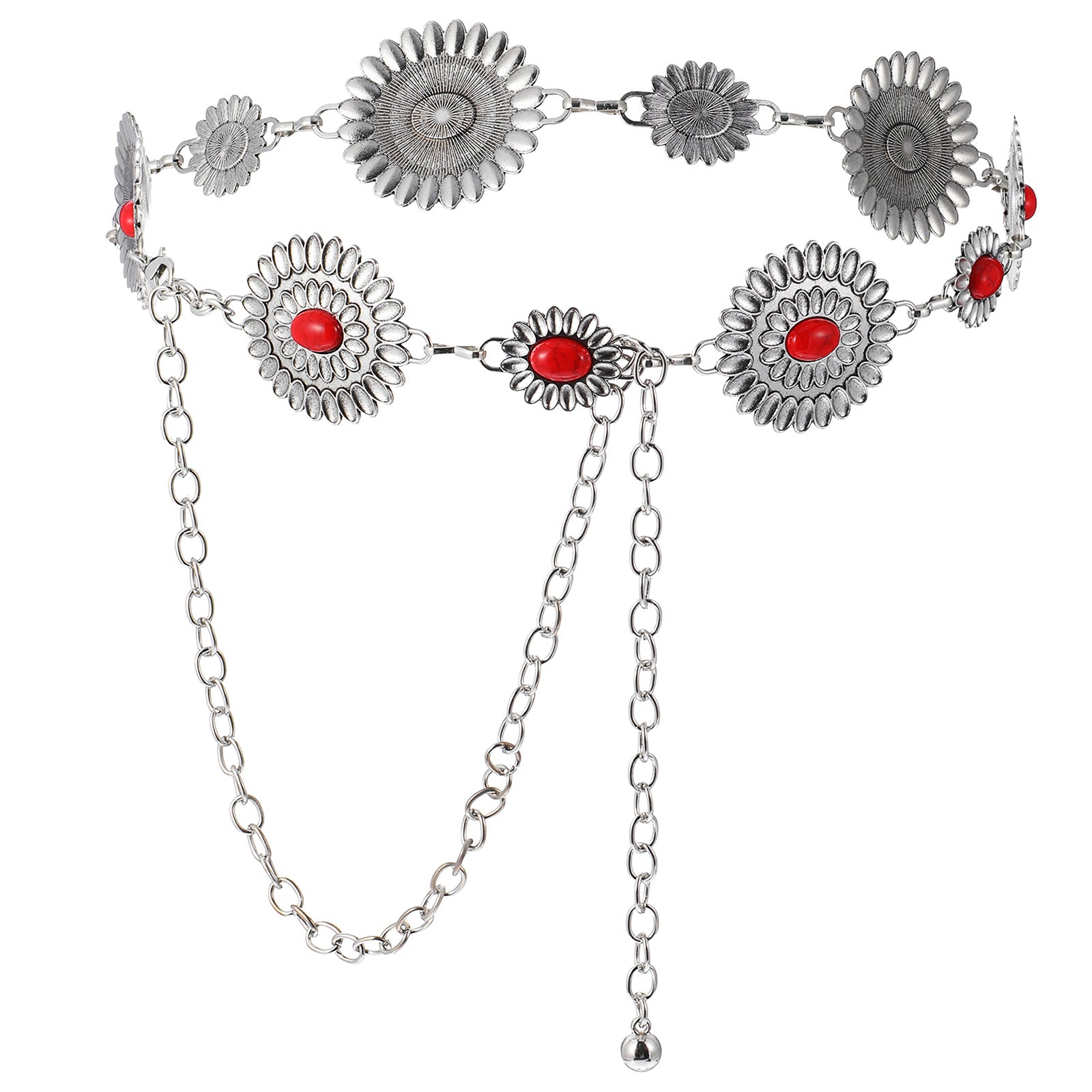 1 PCS Western Chain Belt Concho Belts for Women Cowgirl Metal Concho Belt Metal Link Chain Belts for Women Adjustable Oval Waist Chains Chunky Thick for Dresses Jeans Country Concert Outfit (Red)