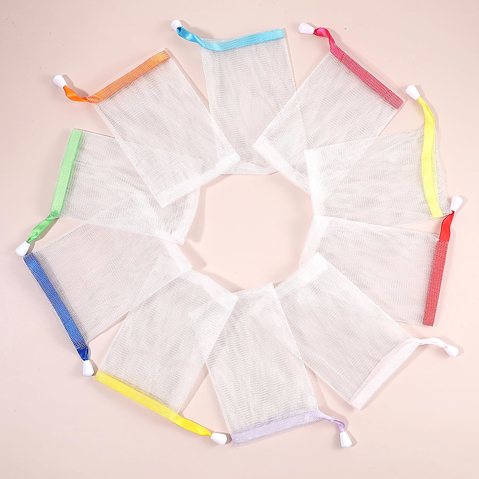 10 PCS Mesh Soap Bag Transparent Soap Mesh Bag Multicolor Exfoliating Mesh Soap Saver Pouch Bubble Foam Net with Drawstring Handmade Soap Bubble Mesh Bags for Foaming and Drying Storing Hangable