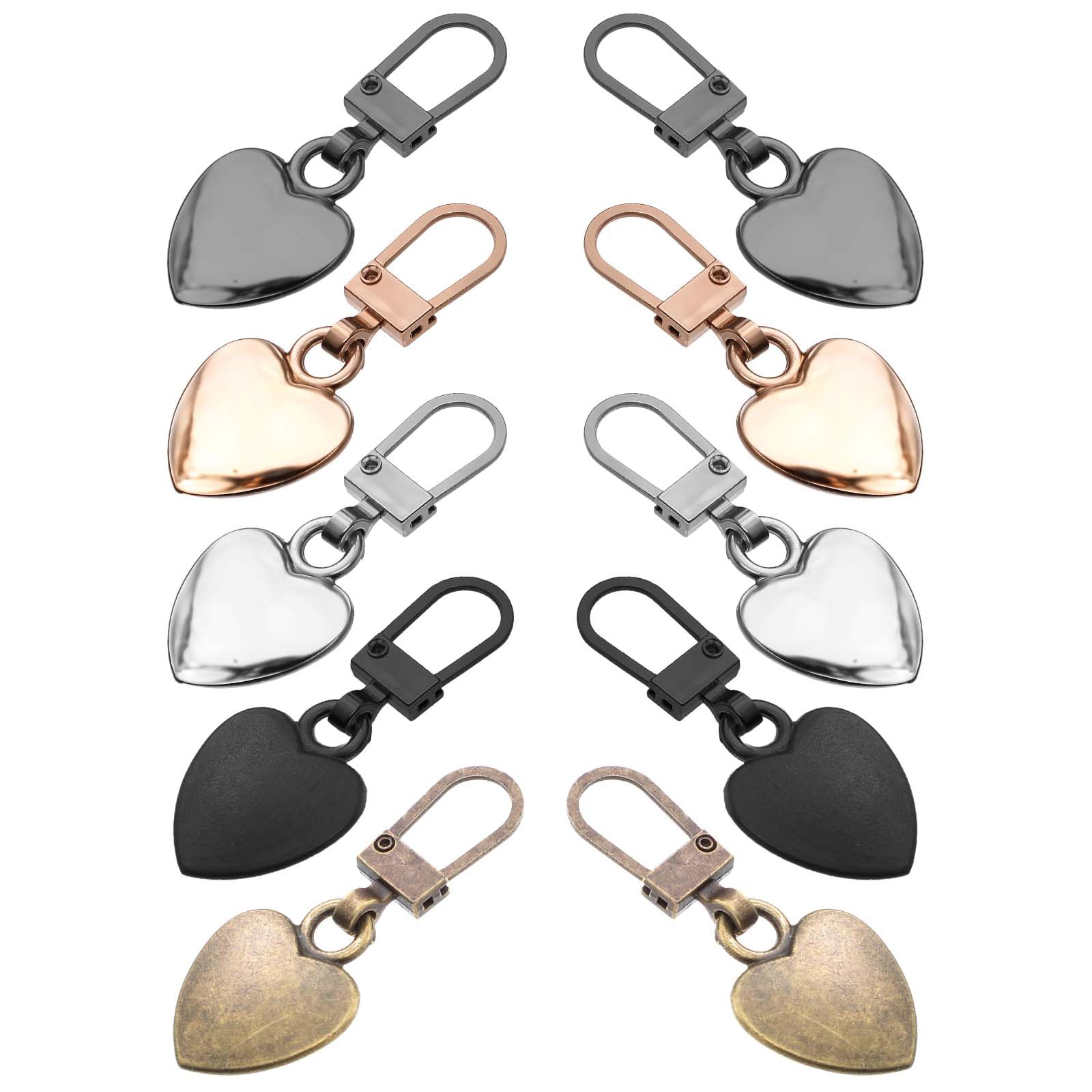 10 Pcs Multicolor Heart Shaped Zipper Pull Replacement Detachable Zipper Pull Charms Heart Durable Metal Tabs Backpack Zippers Mend Fixer Repair for Jackets Purses Luggage (5 Color)