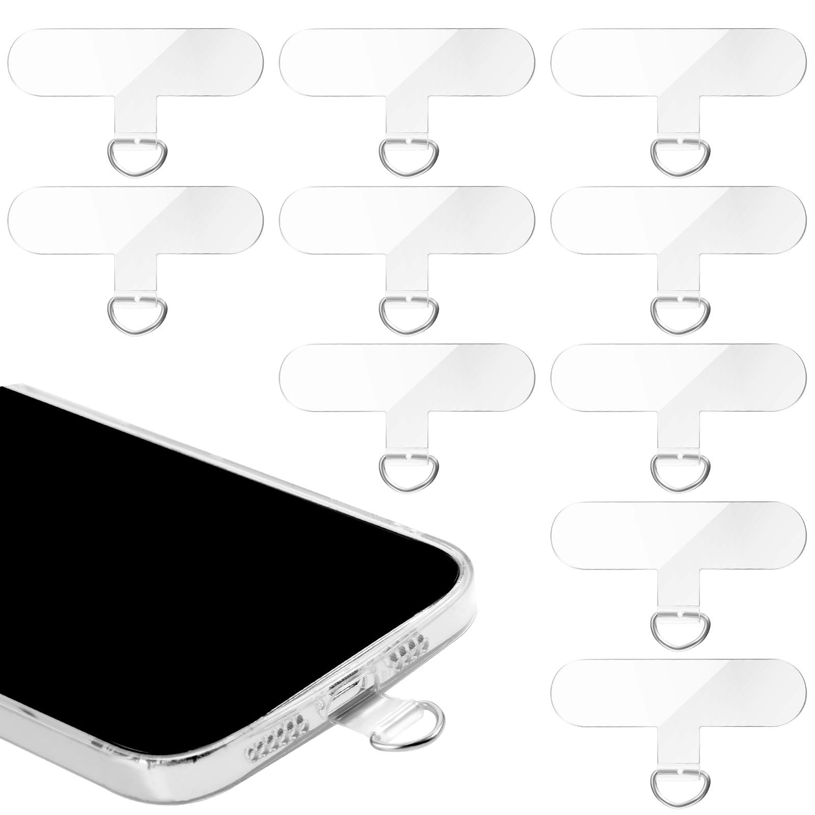 10 Pcs Phone Tether Tab Without Adhesive Phone Lanyard Patches With Metal Ring, Transparent Pvc Phone Tether Tab Clear Lanyard Phone Strap Tether Tab For Most Smartphones Strap Charms Patch Pad