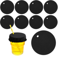 10 PCS Universal Drink Cover Scrunchies, Washable Universal Drink Protector Cap, Reusable Elastic Drink Protector with Straw Hole for Alcohol Safety Cups Glasses Polyester Cup Covers (Black)