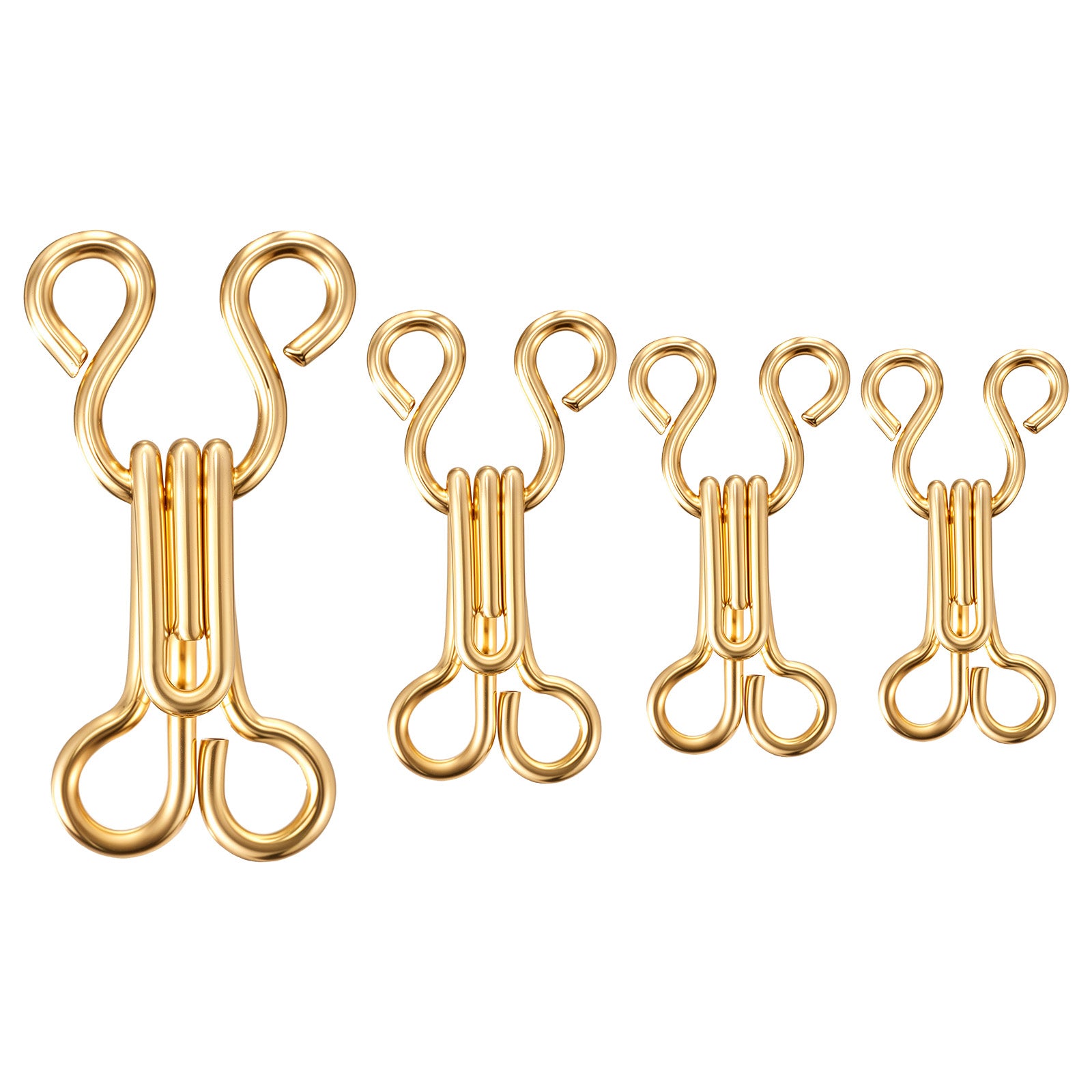 100 Pairs Sewing Hooks and Eyes Closure 11.5/12.5/14/17mm Metal Bra Snap Hook Replacement 4 Sizes Sewing Accessories for Clothing Skirt Trousers DIY Craft Gold Women Festival Gifts