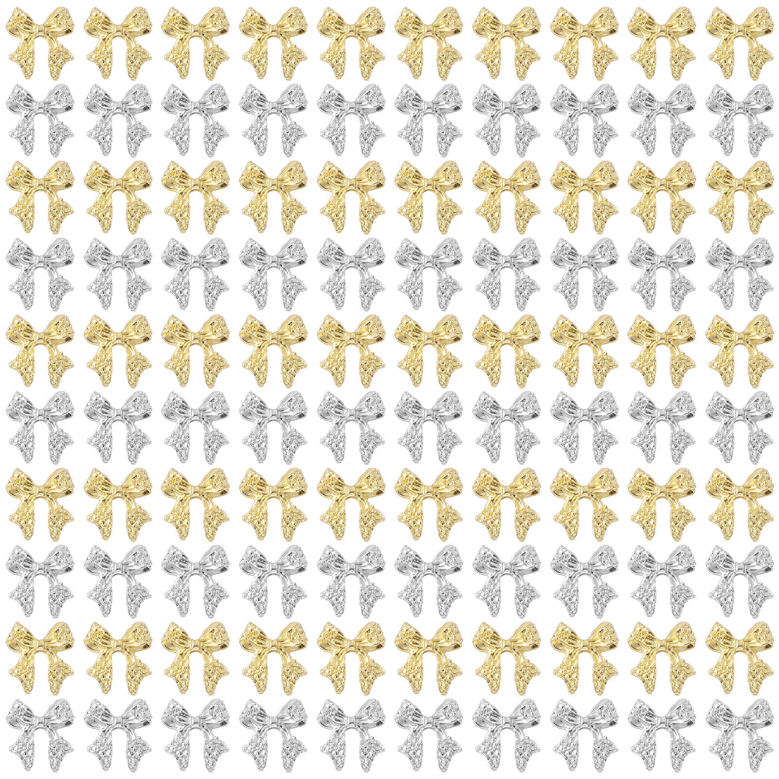 100 PCS Gold Bow Nail Charms Gold and Silver Metal Bow Charms for Nails 3D Alloy Bowkont Nail Art Charm Bows Art Studs Rivets for DIY Y2k Women Design Jewelry (0.41" ×0.39")