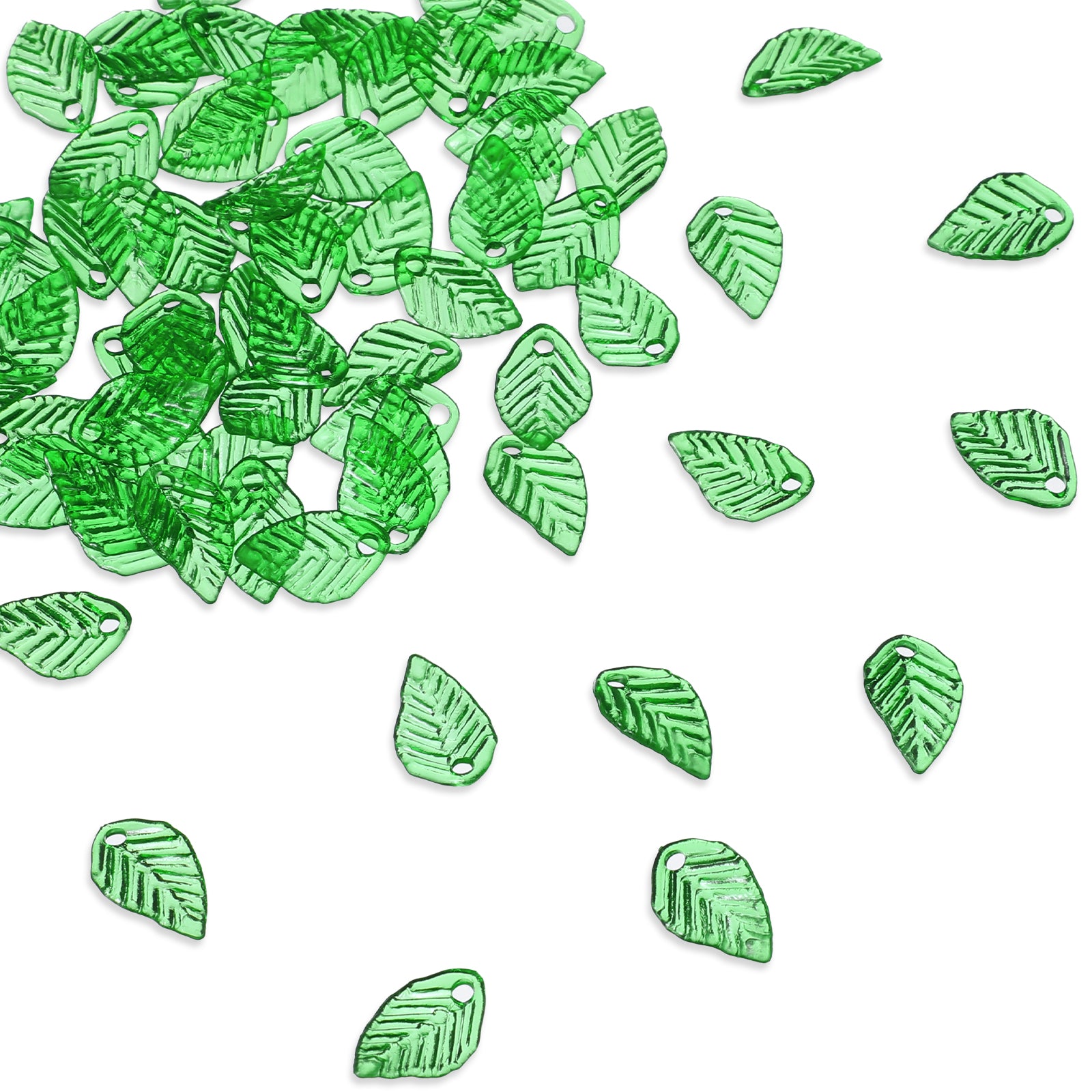 100 Pcs Green Leaf Beads for Jewelry Making Transparent Acrylic Plant Tree Leaf Charms Plastic Leaves Pendants with Hole Fit Earring Bracelet Necklace Making DIY Craft Beading Decorate Women Gifts