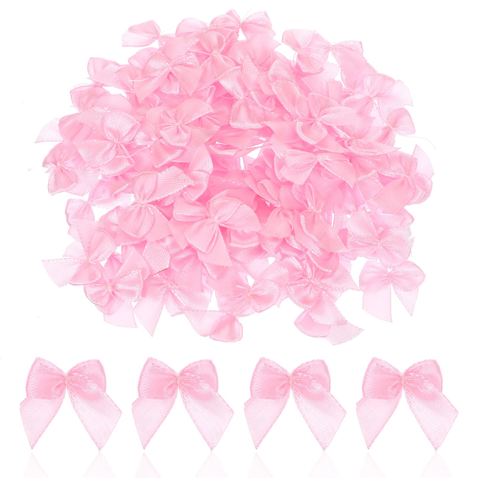100 Pcs Mini Pink Satin Ribbon Bows 1 Inch Mini Pink Bows for Crafts Flowers Craft Satin Ribbon Bows for DIY Gift Wrapping Wedding Sewing Scrapbooking and Hair Accessories