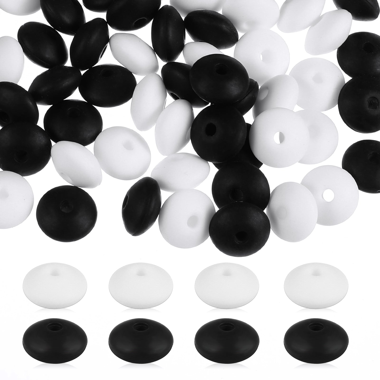 100 Pcs Silicone Beads for Keychain Making Silicone Lentil Beads Black White Silicone Focal Beads Painted Round Spacer Beads Loose Silicone Beads for Pens Necklace Bracelet Lanyard DIY Crafts Making