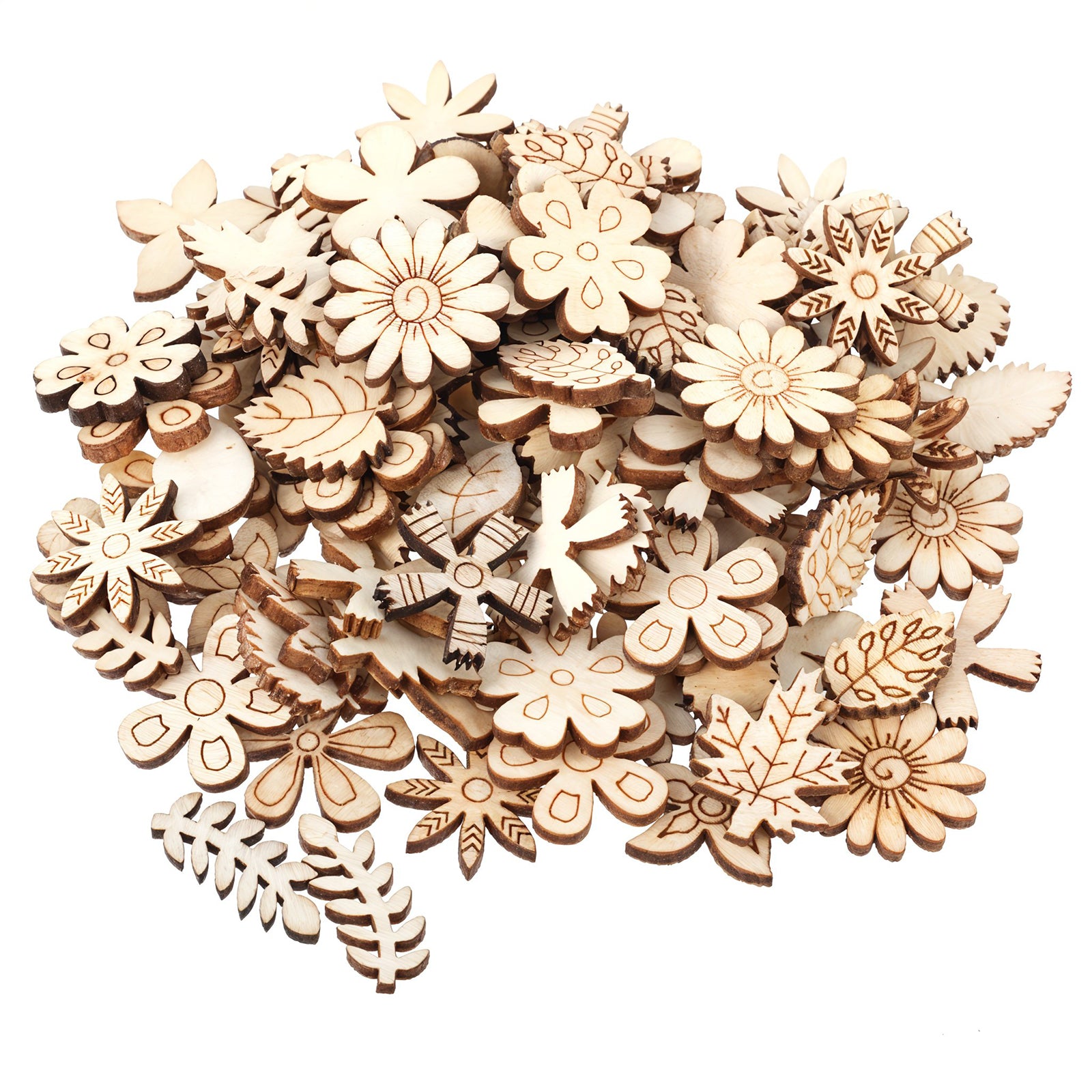100 Pcs Wooden Flower and Leaf Pattern Cutouts for Crafts, Mini Unfinished Wood Pieces for DIY Jewelry, Home Decor, and Ornaments