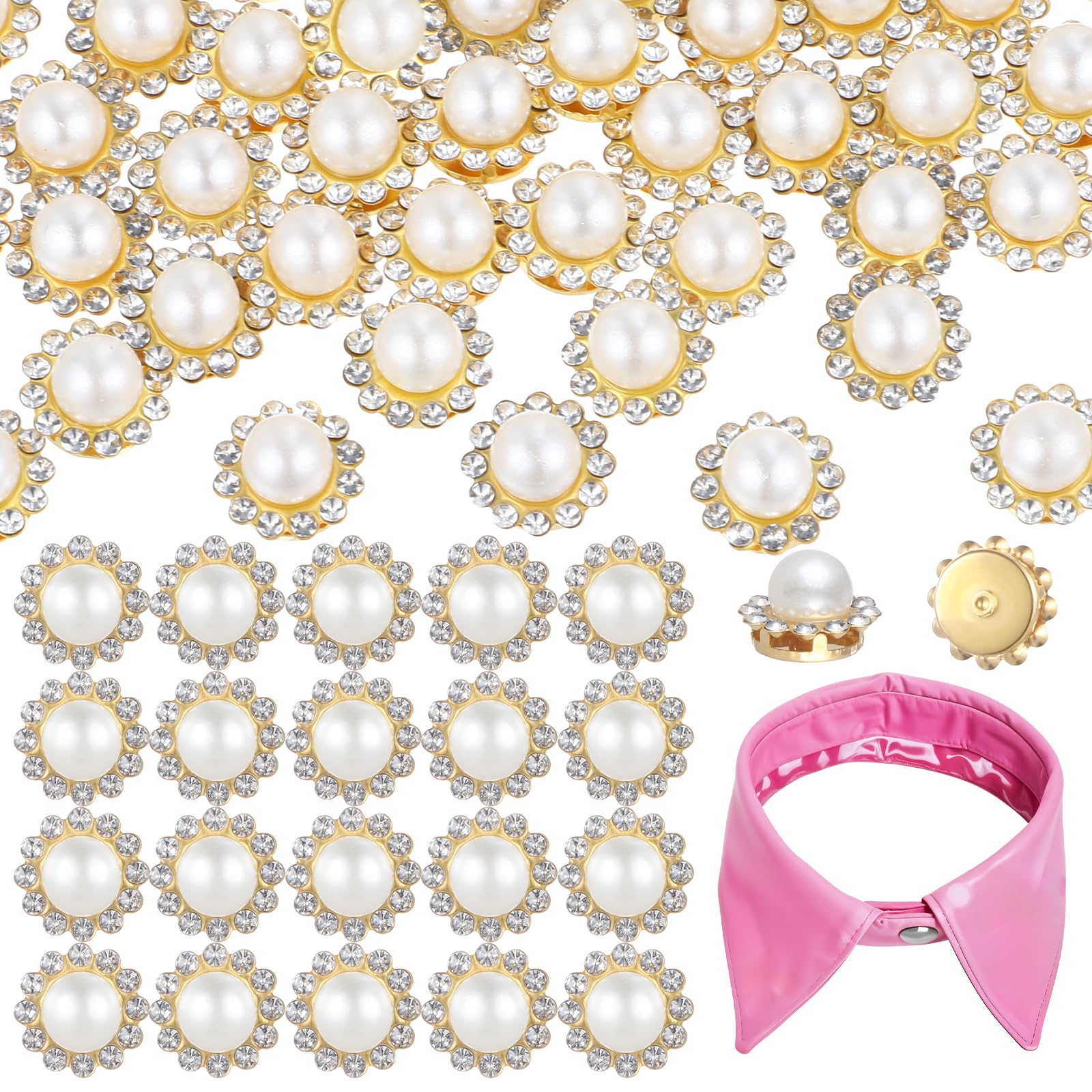 Packing list: 100pcs flower claw pearl sewn rhinestones with gold flat bottom