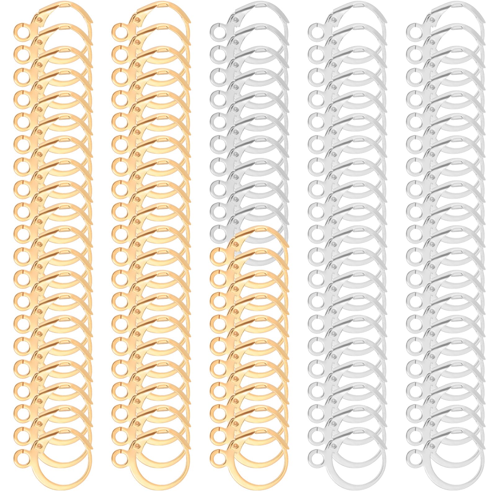 100PCS Earring Hooks for Jewelry Making, Leverback French Earrings Hooks Hypoallergenic Huggie Hoops Earring Backs with Jump Rings, Dangle Earring Hook Findings Earring Supplies(Gold, Silver)