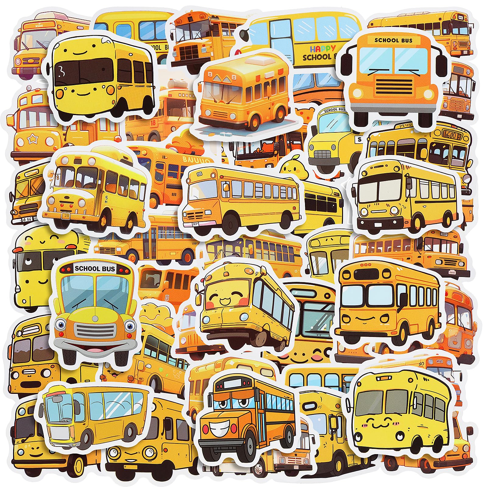 100PCS School Bus Stickers Waterproof Yellow School Bus Decorations, Cute Cartoon Transportation Decals for Kids' Laptops Bottles Notebooks and School Classroom Students DIY Art Decor Crafts(Yellow)