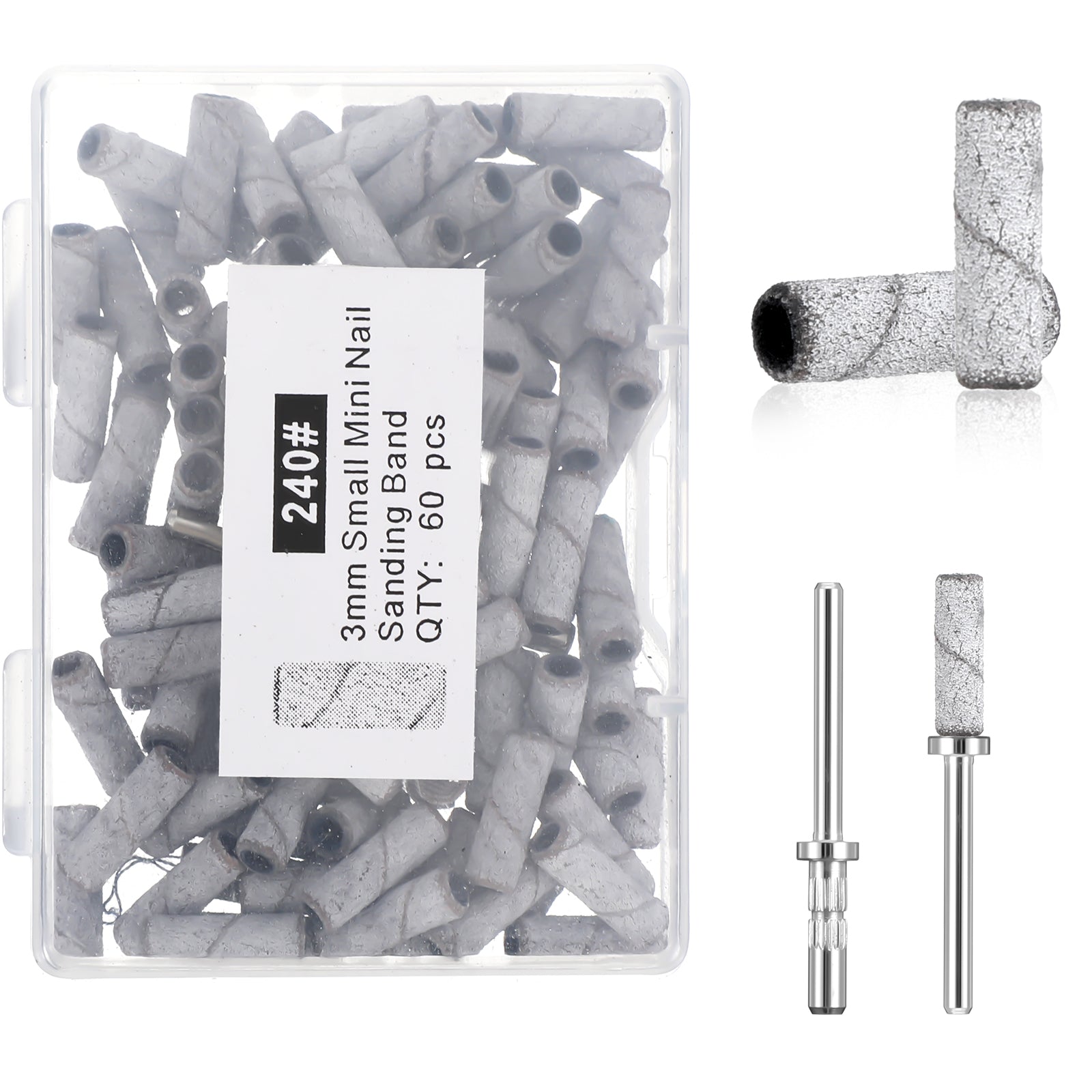 101 Pcs 240 Grit Small Sanding Bands For Nail Drill with 1pcs Mandrel Bit, Mini Nail Drill Sanding Bands for Acrylic Nails Gel Removing Shaping Professional Manicures and Pedicure, Grey