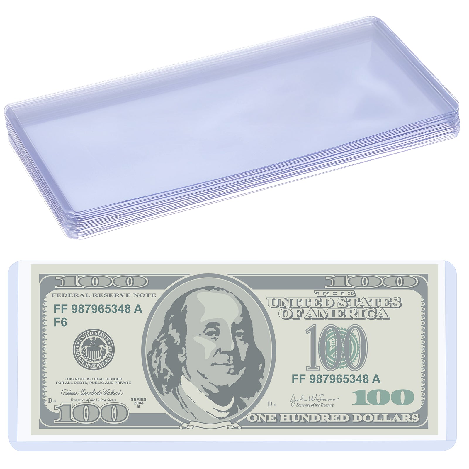 10PCS Clear PVC Bill Sleeves, 6.81 x 2.95 Inch Transparent Currency Protectors, Waterproof Dustproof Banknote Holders for Display, Storage, Collecting, Top-Loading Design for Easy Access