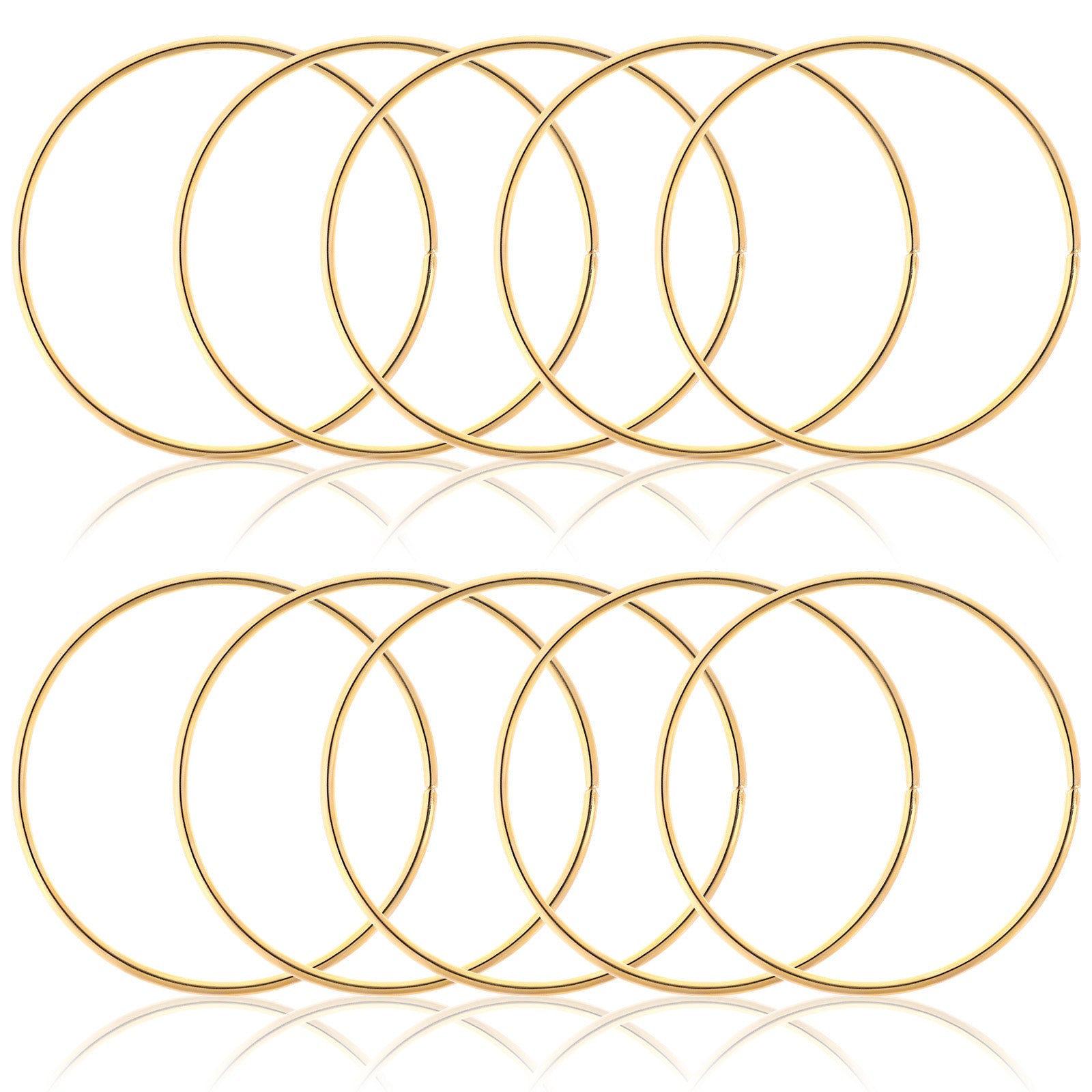 Create beautiful handmade decorations with this practical set of 10 metal craft hoops perfect for various DIY projects. Measuring 2.95 inches (7.5cm) in diameter with a slim 0.12-inch profile, these gold or silver finished metal rings for crafts provide sturdy foundations for dream catchers, macrame wall hangings, wreaths, and ornamental creations. As essential macrame supplies, these ready-to-use rings eliminate the need for DIY frame construction, allowing crafters to focus directly on creative weaving, wrapping, and decorating techniques. The smooth metal surface works well with various materials including yarn, thread, ribbon, and beads, making them suitable for both traditional dream catchers and contemporary craft designs.