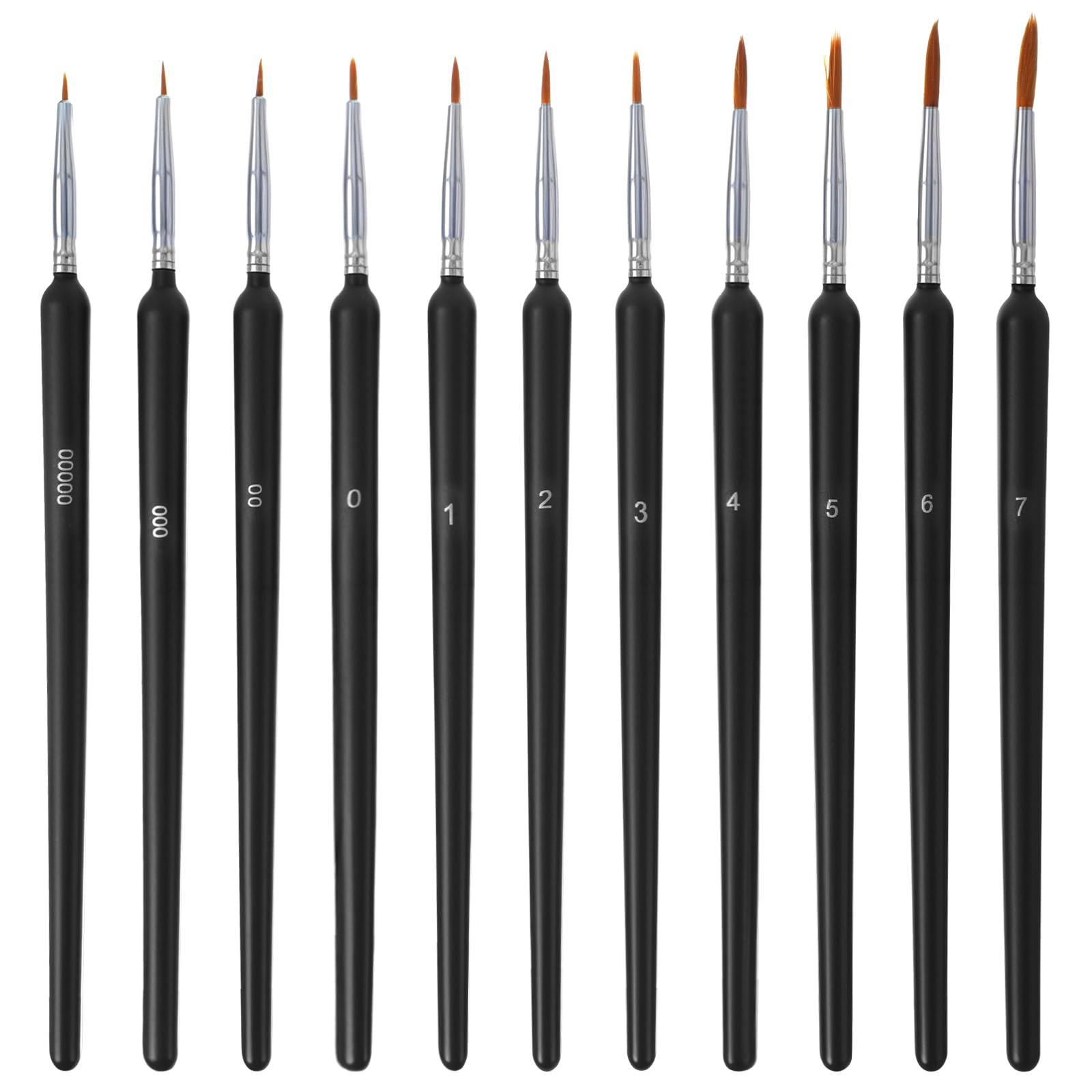 11 PCS Micro Paint Brushes Tiny Detail Paint Brushes Miniature Brush for Fine Detailing Mini Small Liner Brush for Miniature Acrylic Watercolor Crafts Models by Number (Black)