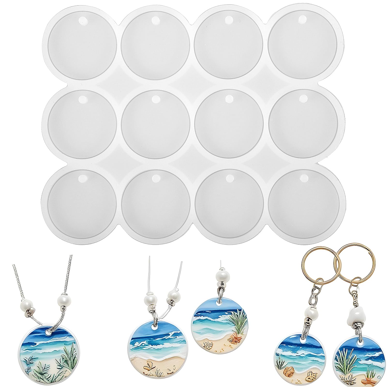 12 Cavities Silicone Moulds Epoxy Resin, Mabor Keyring Epoxy Resin Moulds Silicone Mould Epoxy Resin with Holes Round Epoxy Resin Silicone Moulds for Resin Casting Earrings Key Ring