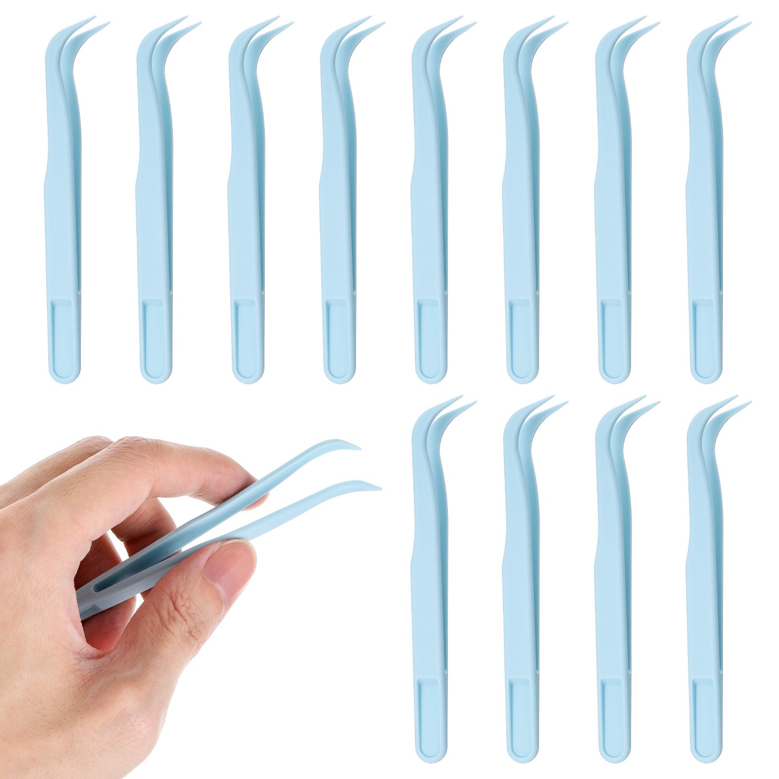 12 PCS Mini Craft Tweezers, Plastic Bead Jewelry Tweezers for Kids Crafting DIY Craft Bead Beading Electronics Sticker Forceps Fine Motor