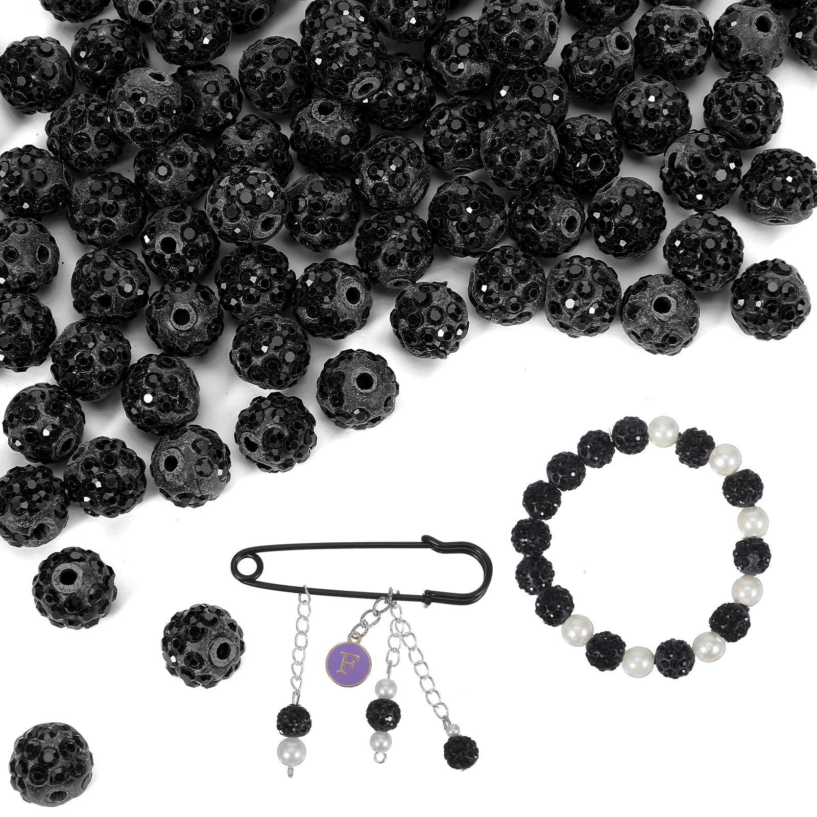120 Pcs Black Clay Beads,Black Pony Beads,Clay Rhinestone Bead for Jewelry Making,Bling Sparkle Rhinestone Bead with Elastic String for Bracelet Necklace Earring Jewelry Making