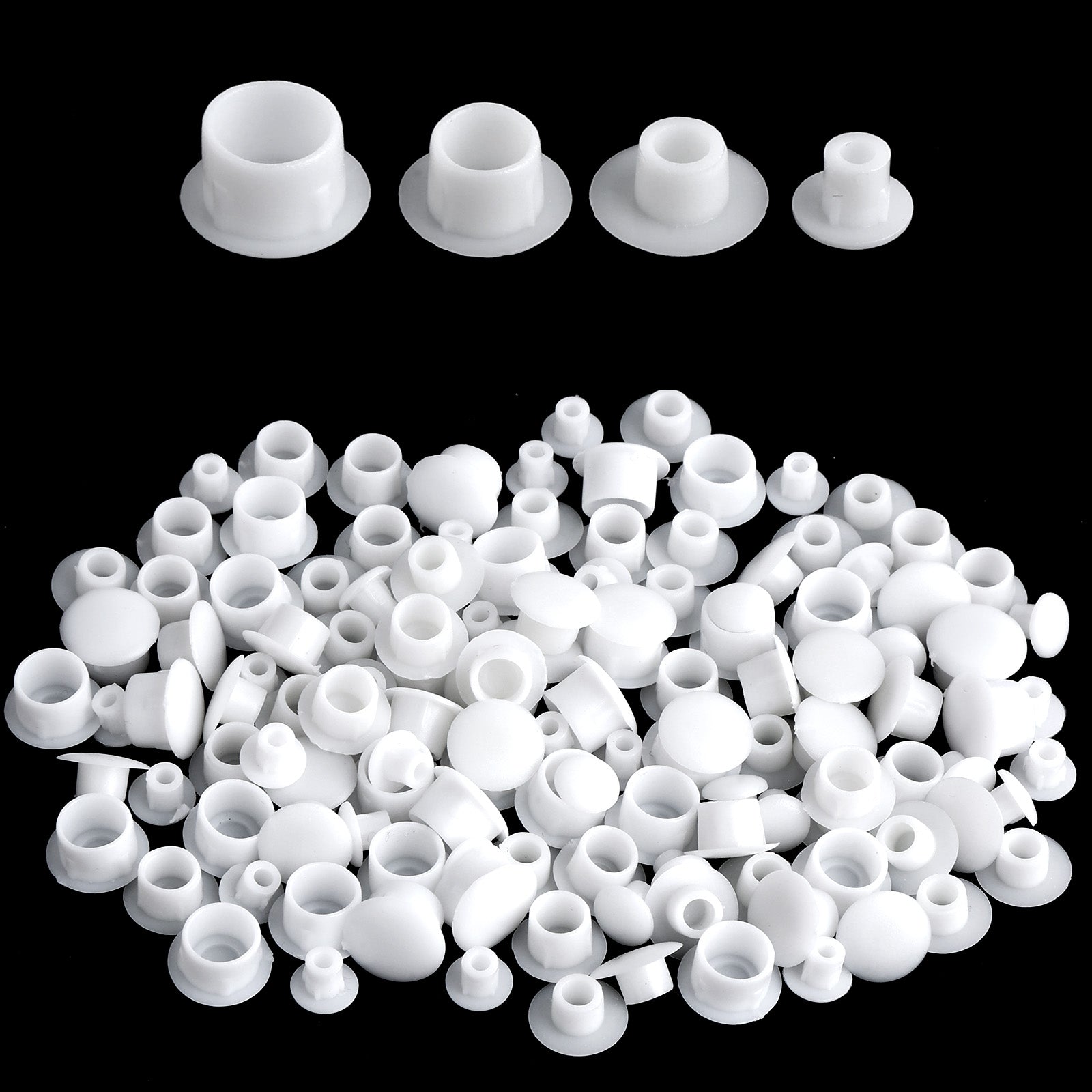 120 Pcs Shelf Hole Plugs Plastic Plugs for Round Hole Shelf Cap Cabinet Holes Cover Cabinet Closet Cupboard Shelves Furniture Peg Pin Nail Screw Drilling Holes Covers Caps 5mm/6mm/8mm/10mm(White)