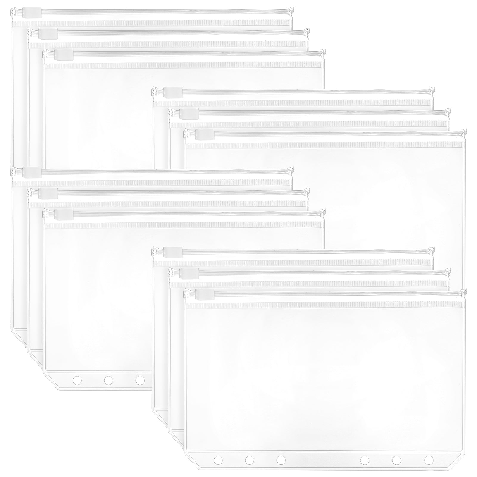 12PCS A6 Binder Pockets, Clear Zipper Pouch Folders for Budgeting, Money Folder Organizer, 6-Ring Binder Inserts for Cash Stuffing and Savings Challenges