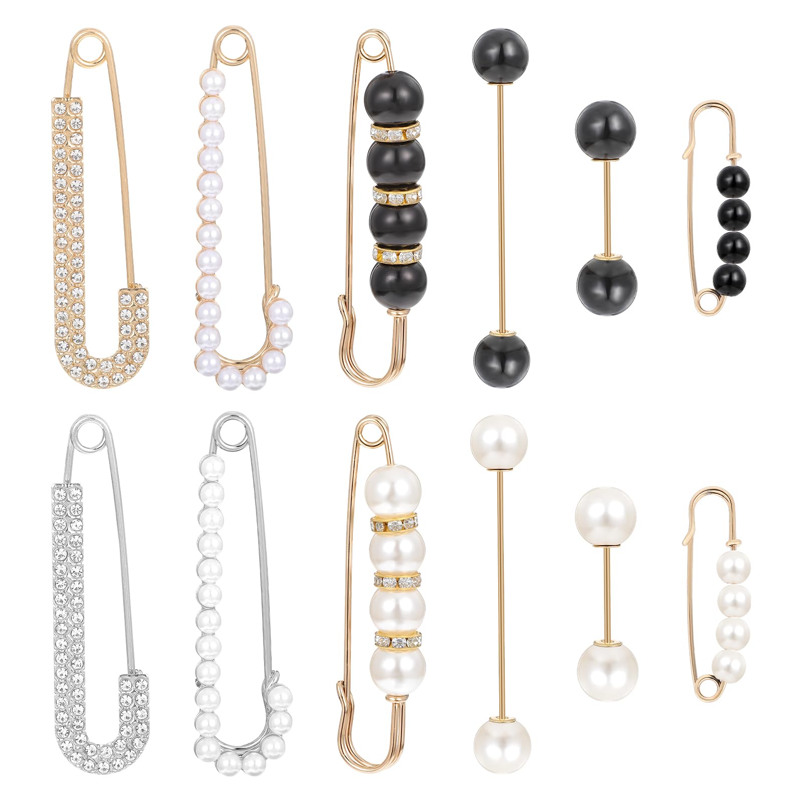 12Pcs Faux Crystal Pearl Brooch Pins for Women and Girls, Safety Pins Rhinestones Sweater Shawl Clips Shawl Pearl Pin For Clothing Dress Pants Skirt Waist Decoration Accessories