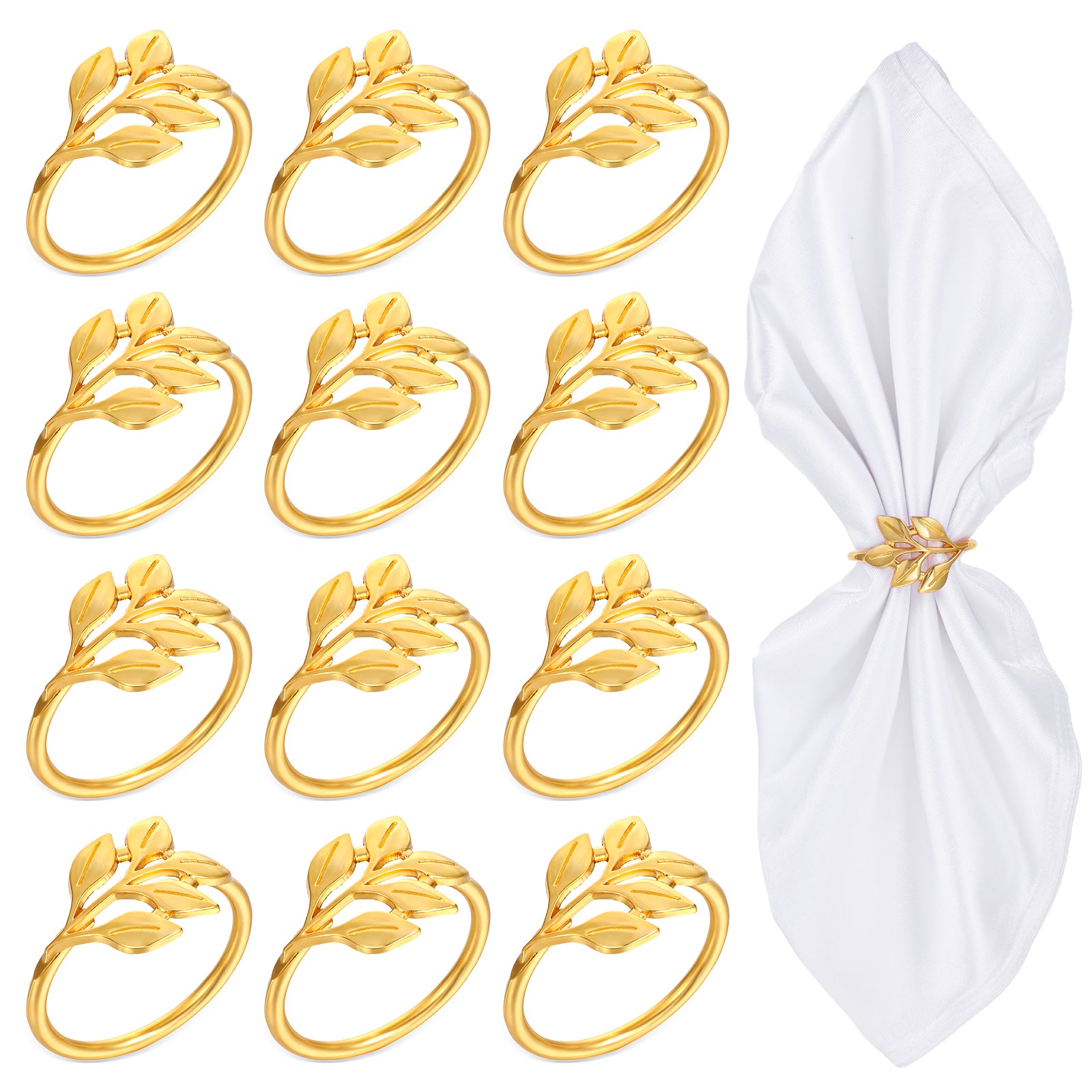 12Pcs Gold Napkin Rings Set Metal Leaf Fall Napkin Rings Design for Christmas, Table Settings, Easter Table Decor, Wedding, Holiday Dinners, Special Occasions, Gift Giving