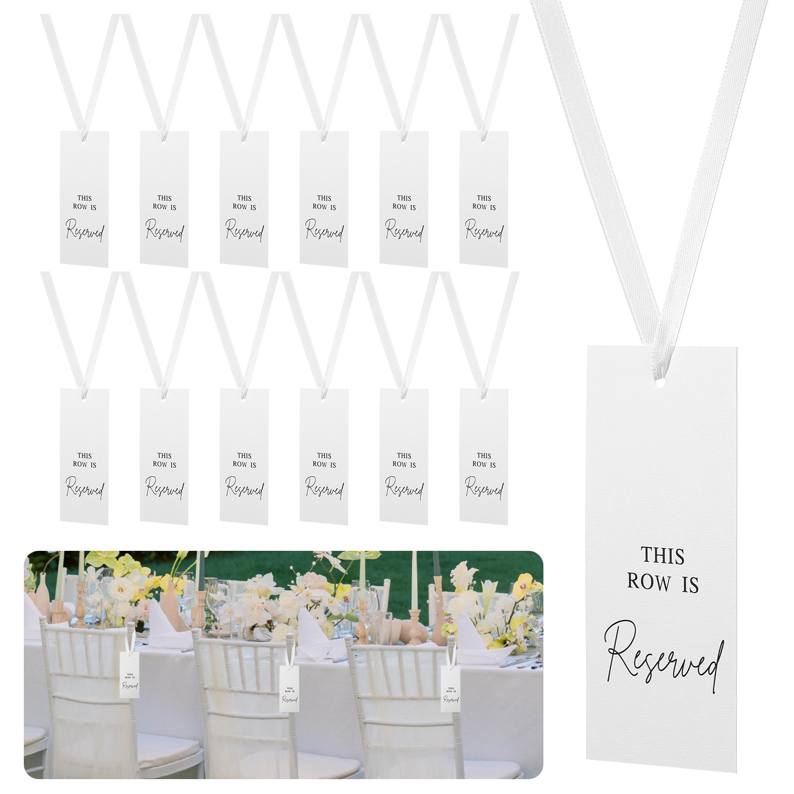 12pcs Reserved Seating Signs,Wedding Reserved Table Signs,Elegant White Seating Cards with Ribbon Hangers for Wedding Banquet Party Activities Church Bench Restaurant Location Label Decoration