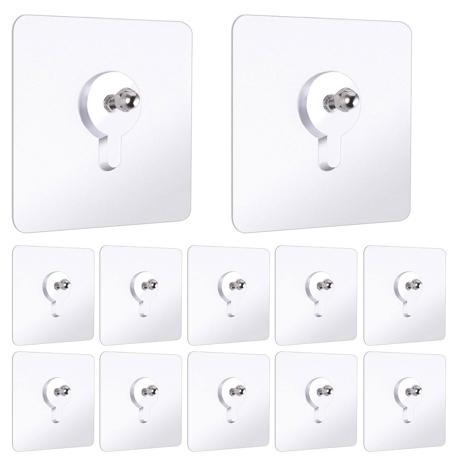 12PCS Self Adhesive Hanging Nails, Nail Free Sticker Hook, Transparent Wall Hooks Adhesive, Wall Stickers for Hanging Sticky Hook for Wall Art Mirror Living Room Bathroom Kitchen Home