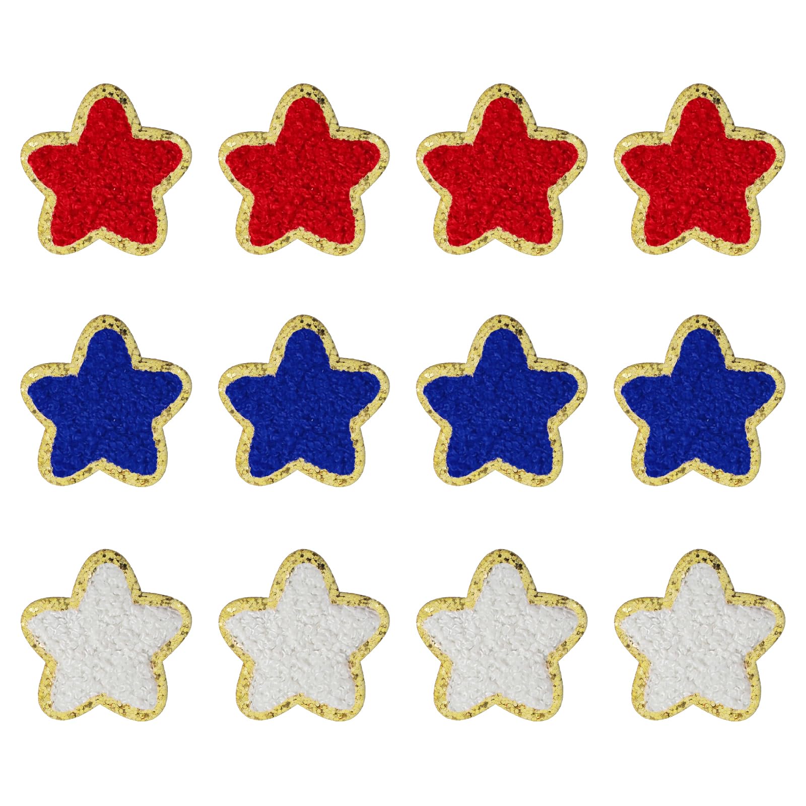 4 pieces each in red, white, and blue, 12 pieces Star Patches per package