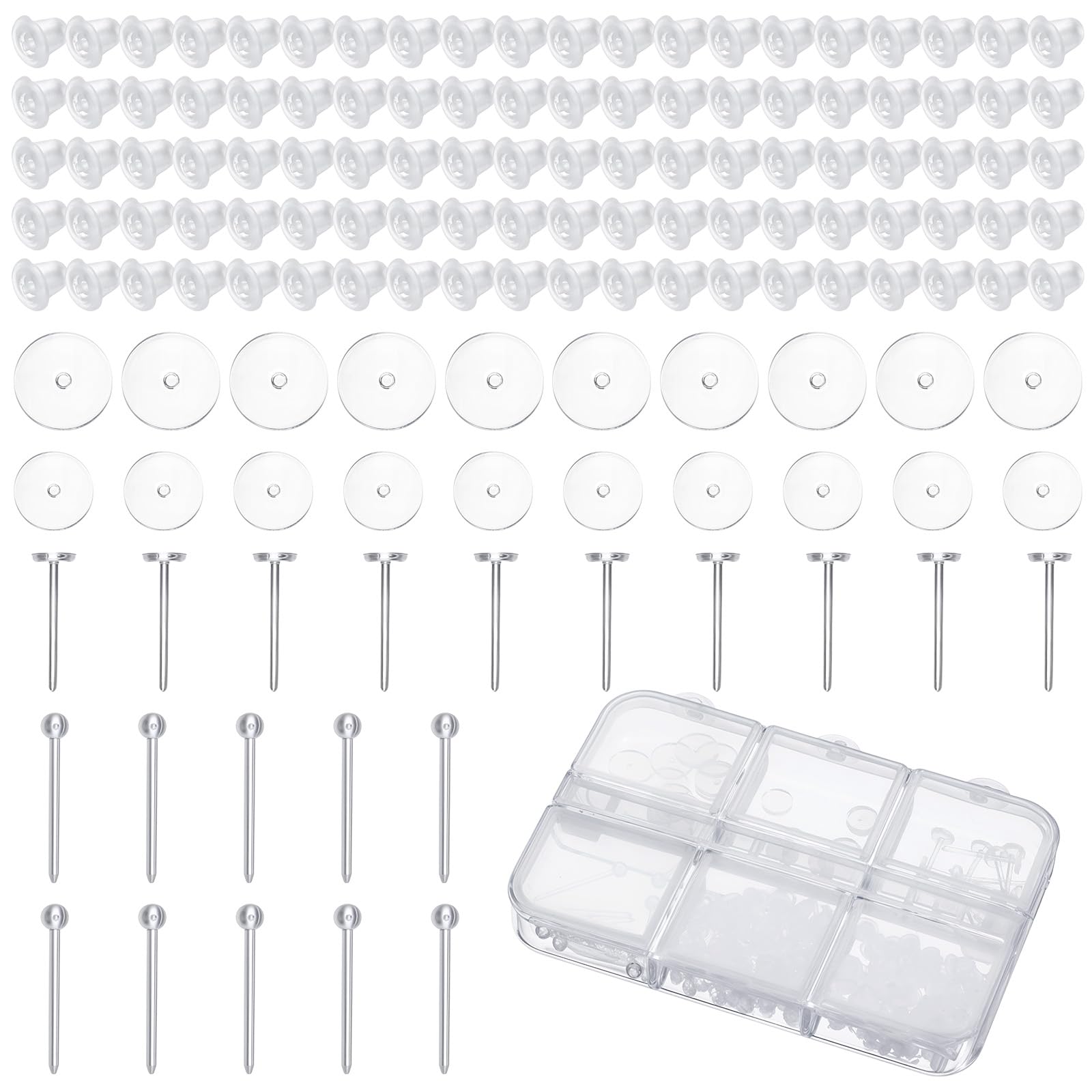 140 PCS Earring Stoppers 5/7 Mm Piercing Disc for Piercing Bump Ball Flat Silicone Studs for Sports Clear Backs Earring Retainers Soft Clear Disk Pads Replacement Kits for Earrings Sports Work DIY
