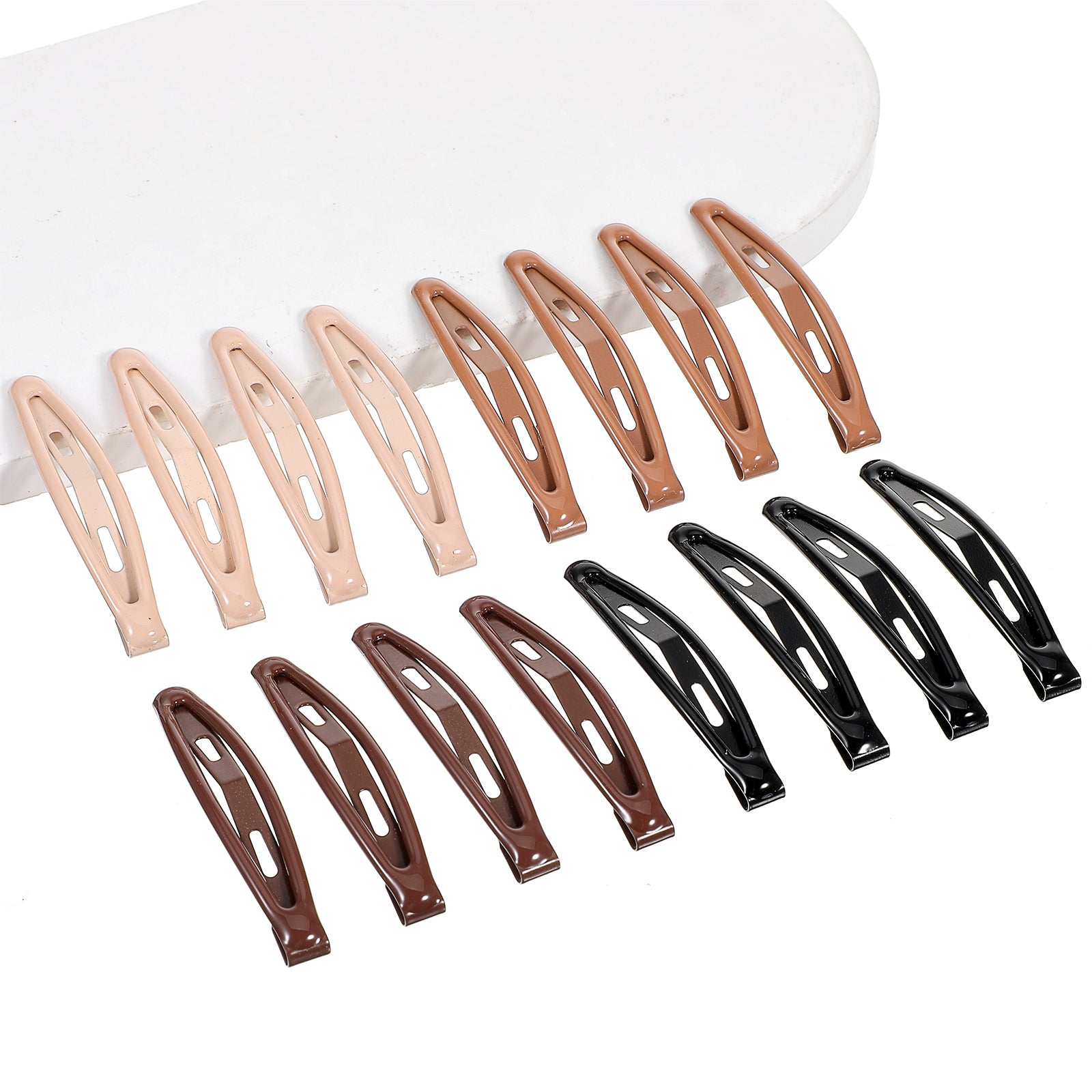 16 Pcs Metal Snap Hair Clips for Women, Non-Slip Hair Barrettes for Thick and Thin, Stylish Hairs Accessories (Black, dark brown, light brown, beige, 2.4 x 0.43 Inches)
