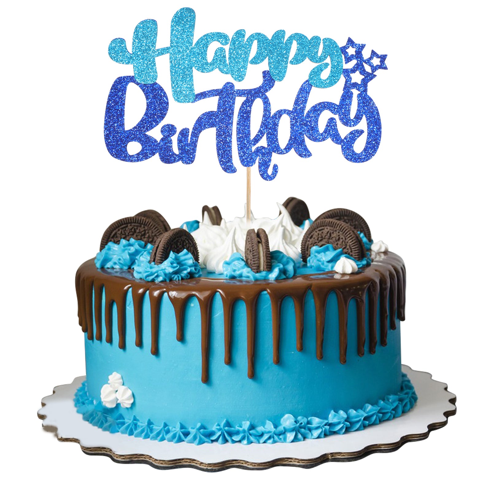 1PCS Happy Birthday Cake Topper, Glitter Happy Birthday Cake Decorations for Celebrating Baby Shower Theme Kids Boys Girls Anniversary Party Decorations Supplies Blue