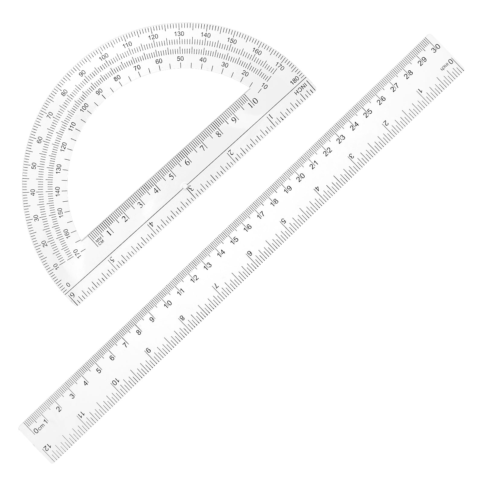 2 Packs 12 Inch Plastic Ruler and 6 Inch Protractor Set, Clear Math Geometry Tools Geometry Rulers Measuring Tool for School, Home, Office, Drawing Supplies