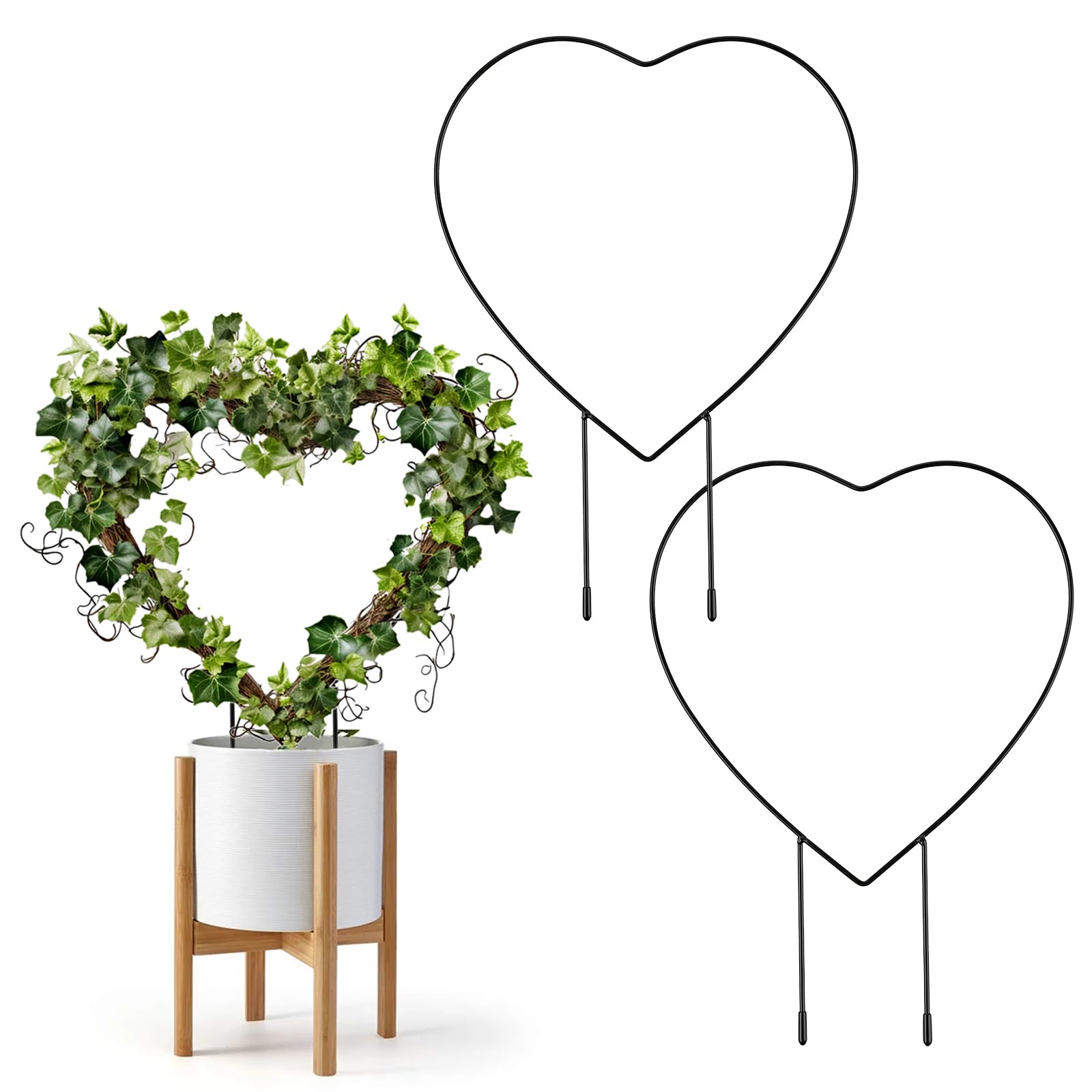 2 PCS 31cm Small Trellis for Climbing Plants, Metal Stackable Garden Expanding Trellis Houseplant Wire Stake with Black Rust Proof Coating for Decorative Vines Flowers Ivy Plant Support (Heart)
