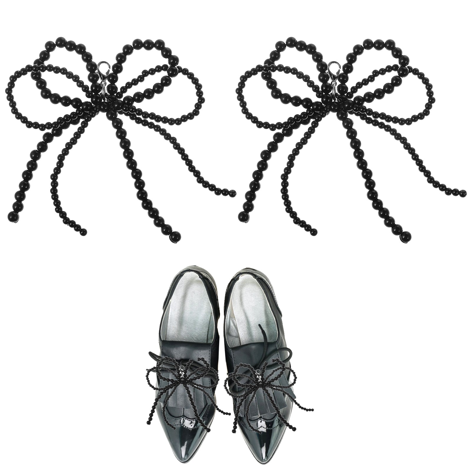 2 Pcs Shoe Charms For Sneakers Pearls Bowknot Sneaker Charms Shoe Lace Charms Sneakers Elegant Pearl Buckle Beaded Chain Dress Shoe Sneaker Accessories For Women Girl Diy Casual Shoe Lace(Black)