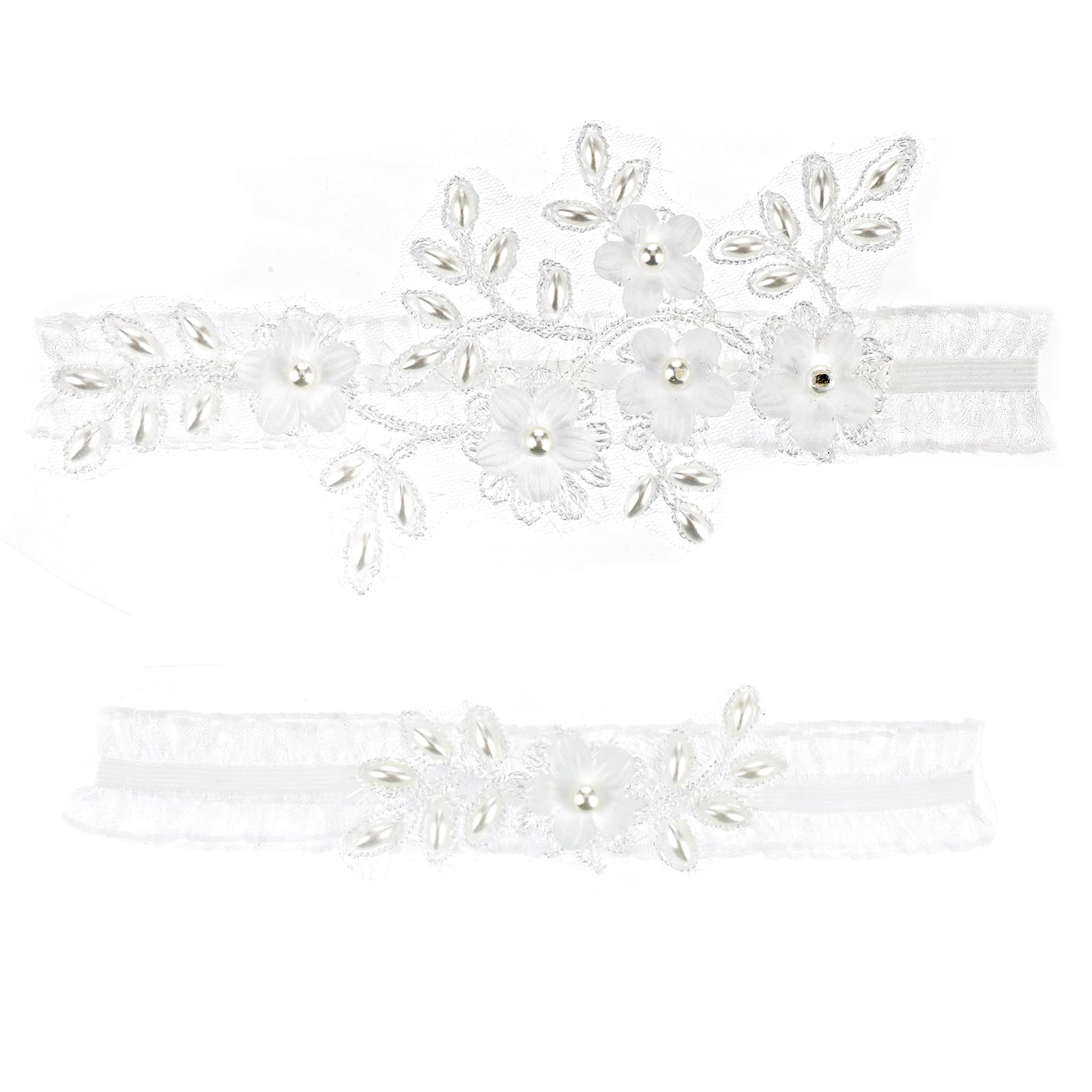 2 Pieces Wedding Garter Set For Bride Lace Wedding Garter White Garters Pearl Garters For Bride Floral Garters Hand Sewn Faux Pearls Garter Bride Garter Prom Leg Accessories For Bride Bridesmaid