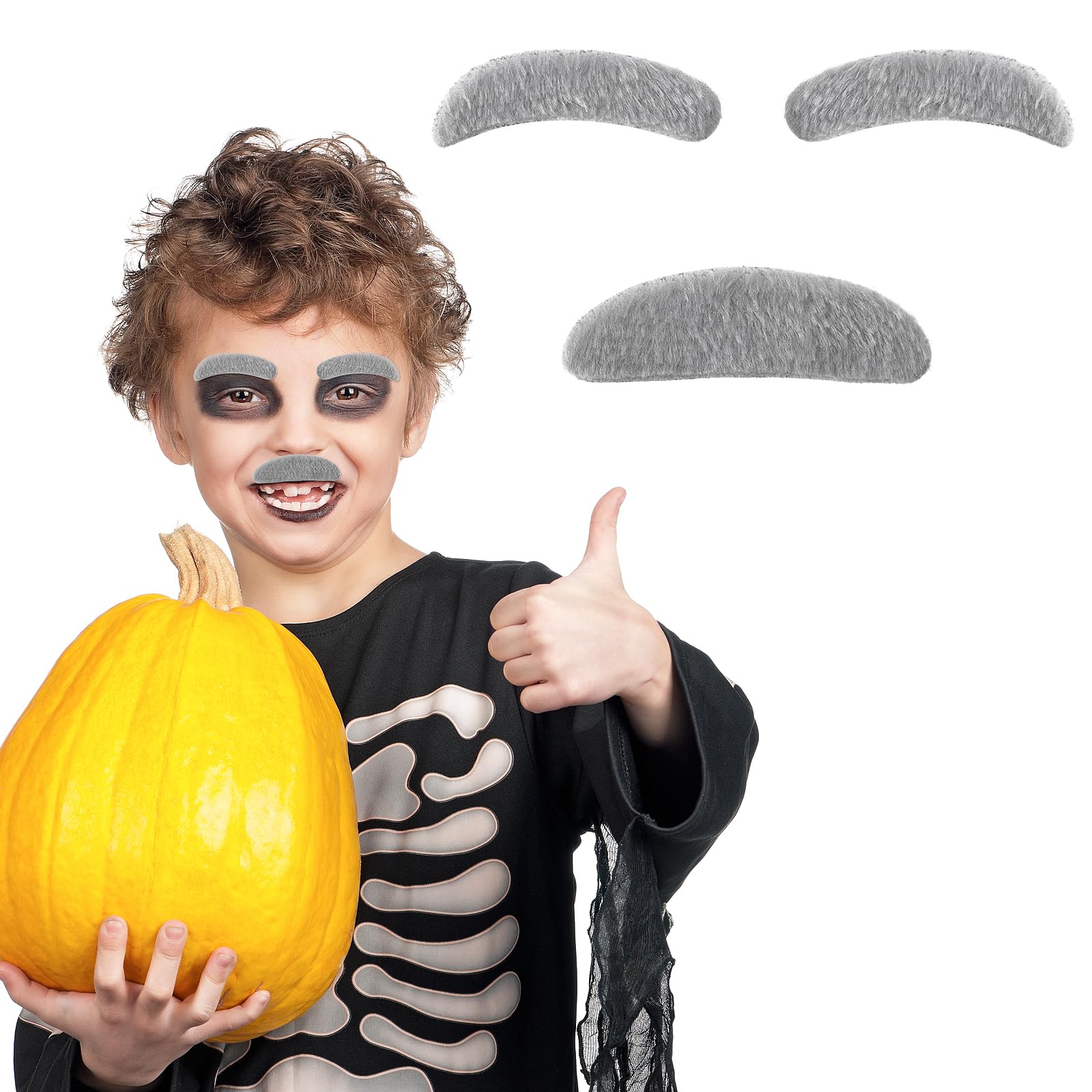 2 Set Old Man Facial Hair Costume Old Man Gray Moustache and Eyebrows Set Stick On Mustache and Eyebrows Fake Mustache for Men Classic Halloween Women Children Party Carnival Pretend Play Stage Props