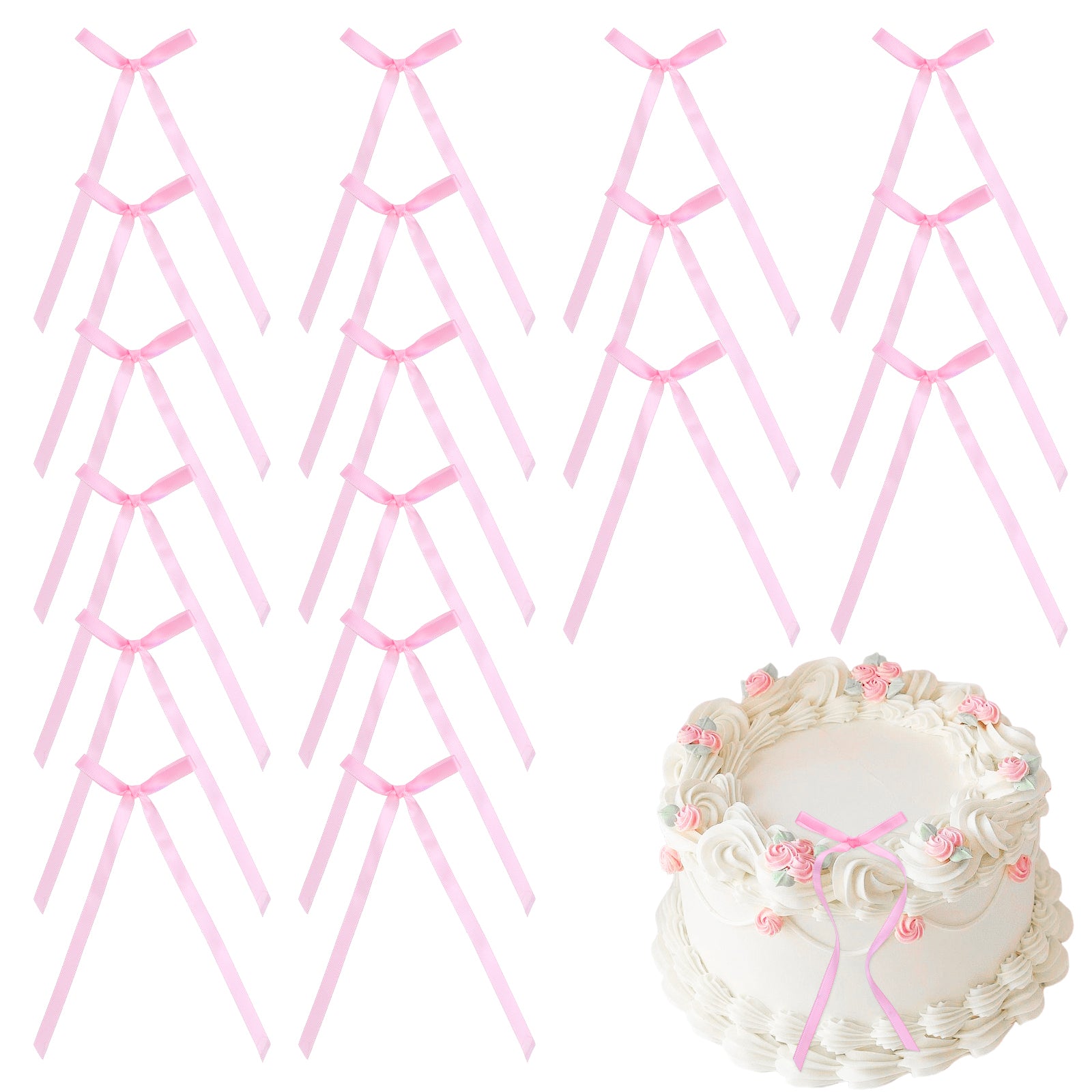 20 Pcs Bow Cake Topper Pink Bows for Cake Decorations Pink Bow Cupcake Toppers Birthday Bowknot Ribbons Coquette High Footed Cup Balloon Wall Party Decor for Wedding Anniversary Party Supplies
