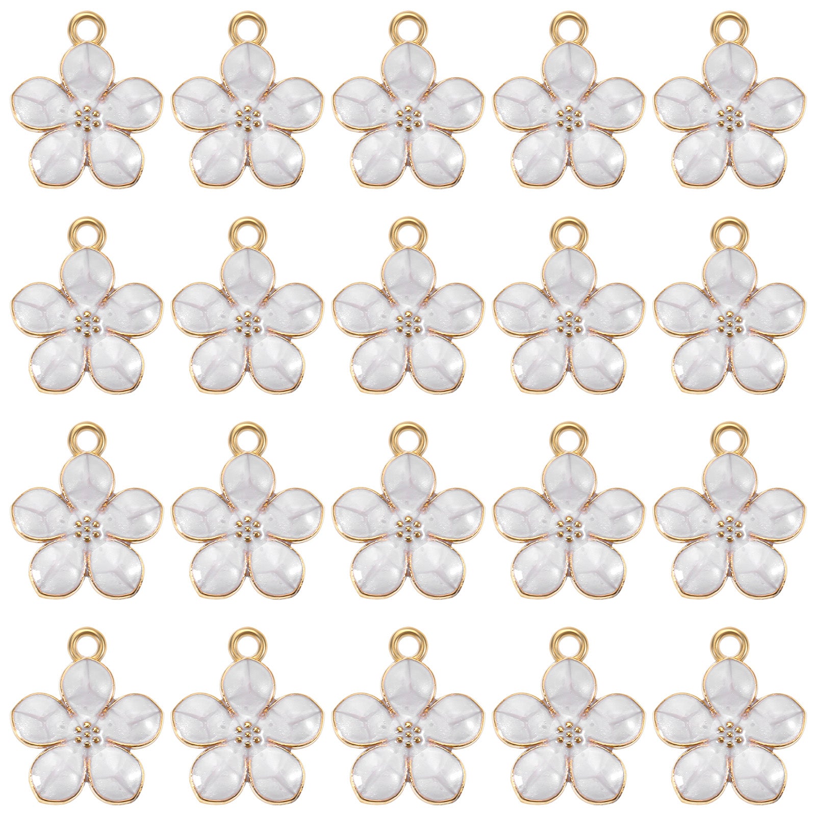 20 Pcs Enamel Charms Cherry Blossom Gold Plated Flower Charms Pendan Alloy Gold Plated Flower Pendant Summer Charm for Jewelry Making for Jewelry Making Bracelet Necklace Earrings Diy Accessories