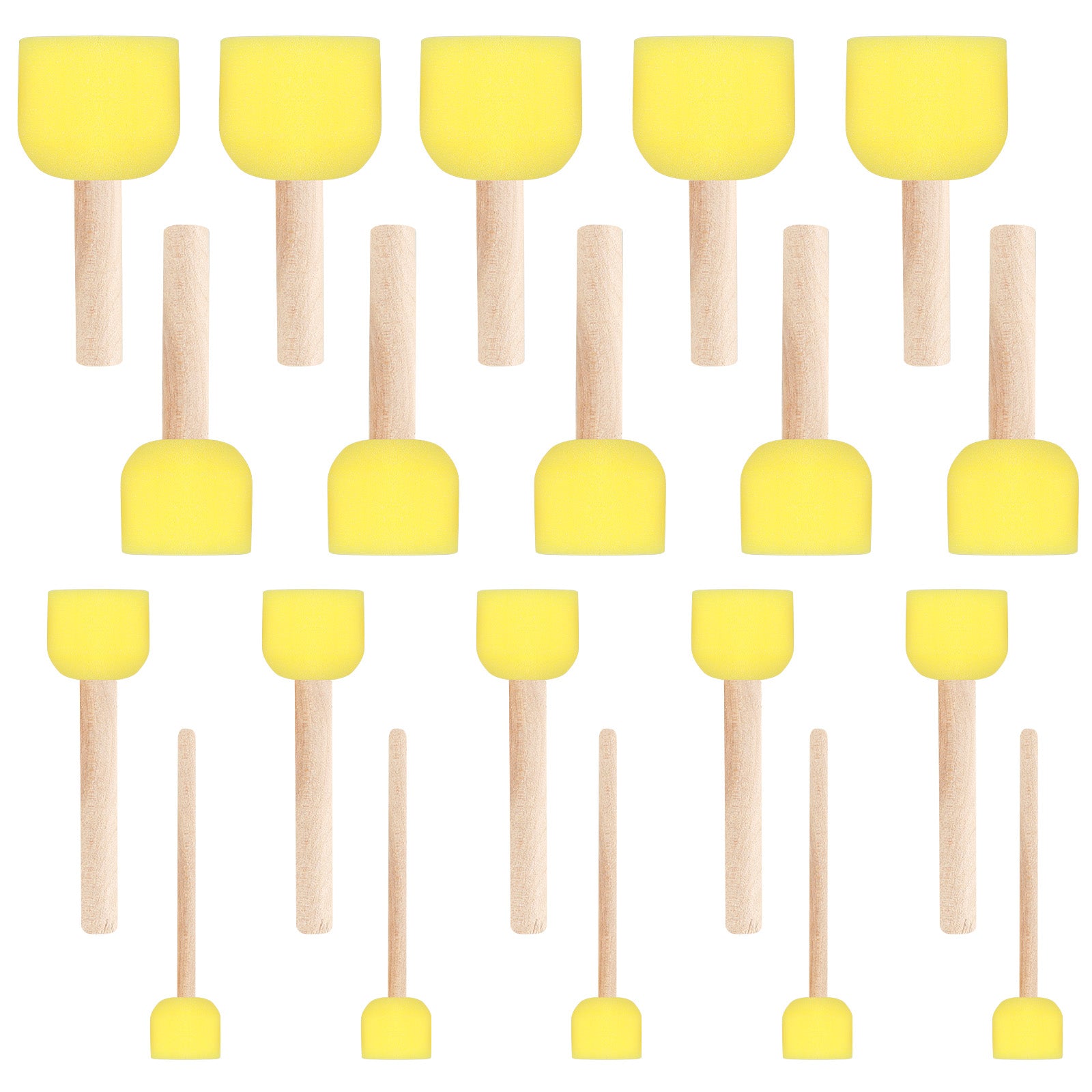 20 Pcs Round Sponge Paint Brush Set, 4 Sizes Stencil Brush Sponge Brushes for Crafts, Paint Sponges for Acrylic Painting, Art Sponges with Wooden Handle Foam Stencil Brushes Painting Tools, Yellow