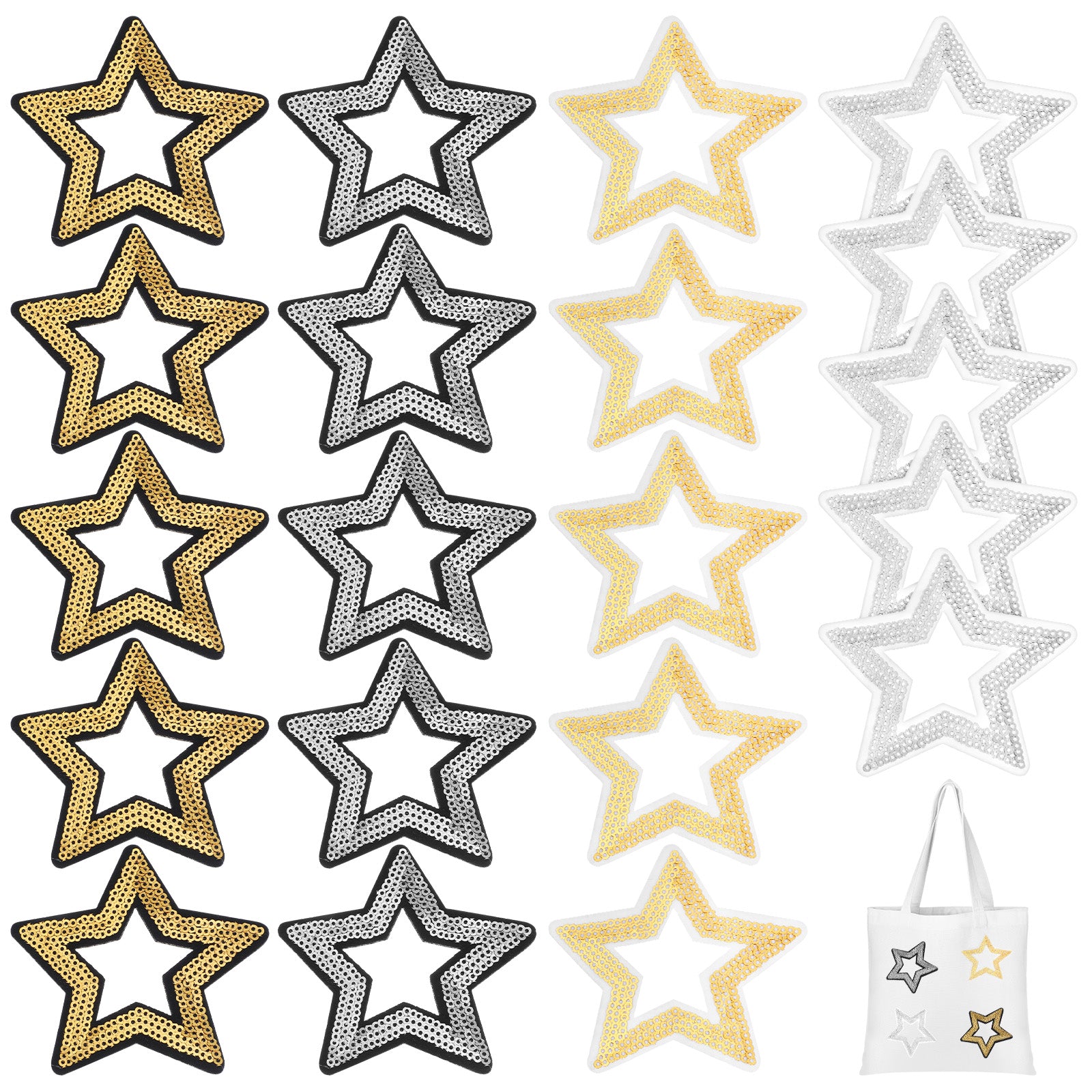 20 Pcs Star Patches Iron On Hollow Sequin & Glitter Star Iron On Patches Sequin Five-Pointed Embroidery Glitter Applique Repair Decoration Accessories for Clothing Jeans Pants Dress Backpack Hat