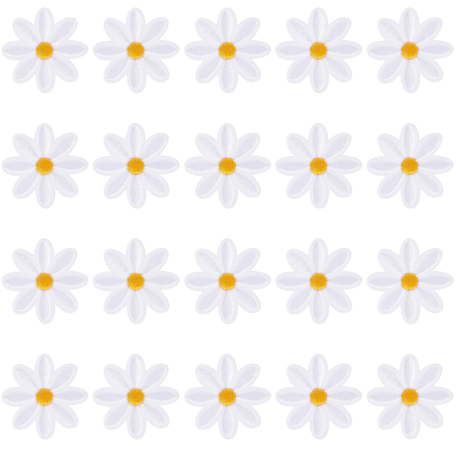 20 Pieces Flower Fabric Stickers Applique Patches 1.41 Inch Daisy Iron on Patches Embroidered Sew on Patches, Delicate Appliques for DIY Decoration T-Shirt Backpack Hoodies Shoes Bags