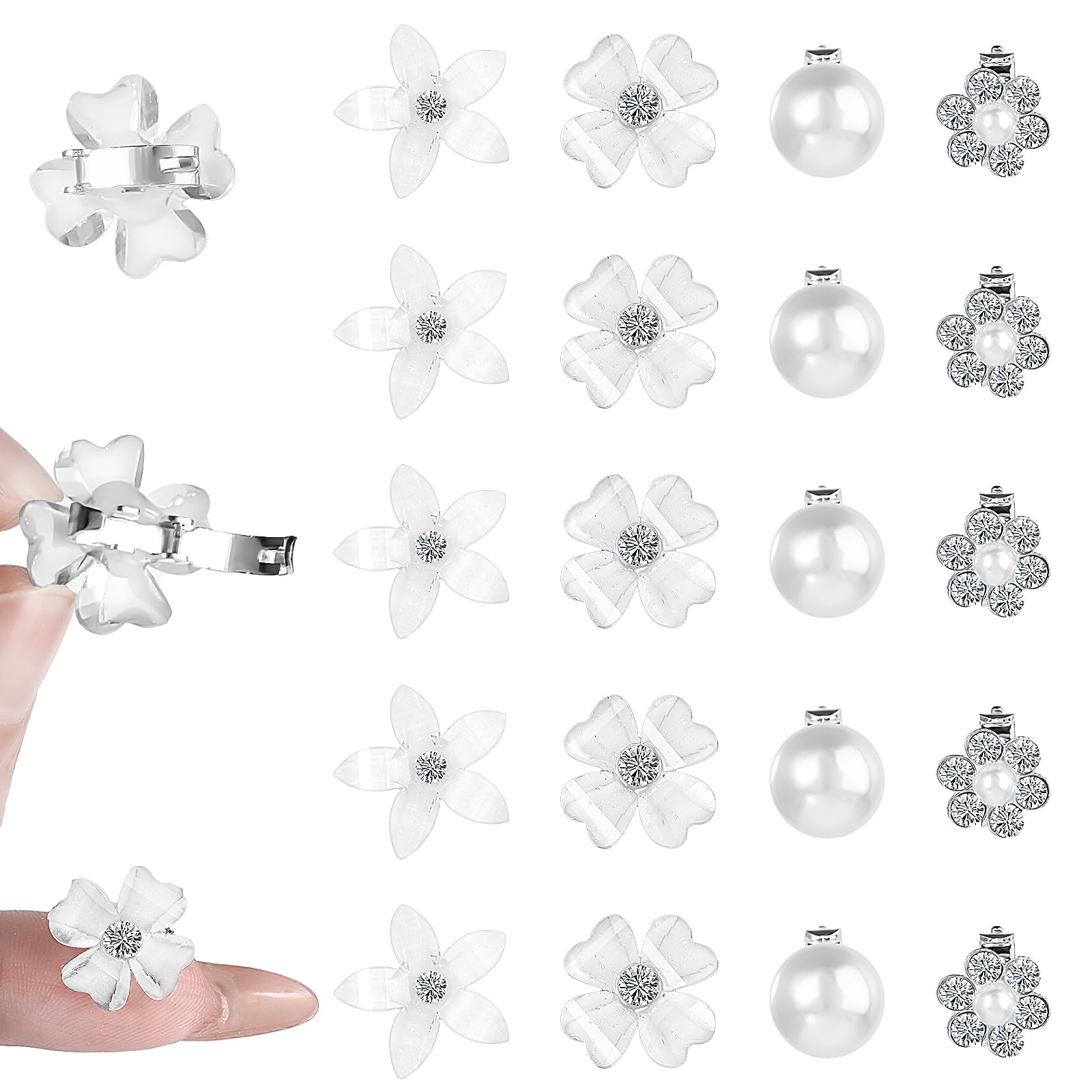 20Pcs Mini Clips for Hair, Mabor White Flower Hair Clips with Rhinestone Cute Hair Pins Decorations Small Flower Hair Clips for Wedding Hair Barrettes Bridal Hair Accessories for Girls Women