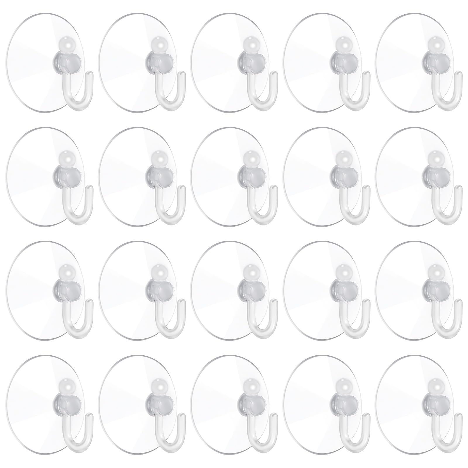 20Pcs Suction Cups Hooks Heavy Duty for Shower 1.6 Inch Transparent Wreath Hanger for Bathroom Wall, Window, Kitchen, Glass Door, Mirror, Tile, Towel, Coat, Bath Robe, Waterproof Reusable
