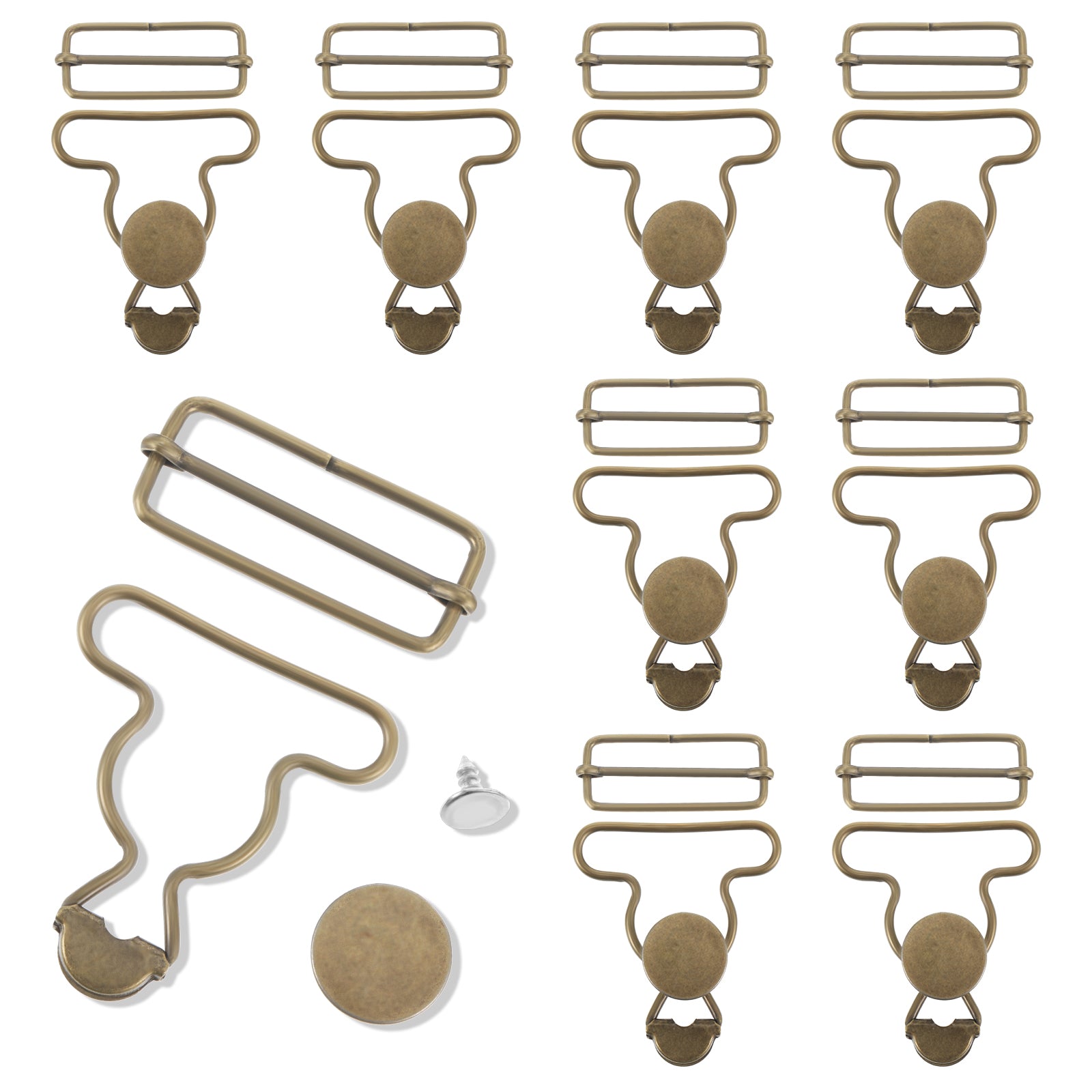 24 Pcs Overall Buckles Replacement Suspender Buckle Metal Bib Clip Clasp with Adjustable Tri Glide Slide Buckle Gourd Buttons and Screw for Jeans Suspender Pants Sewing Accessories Bronze