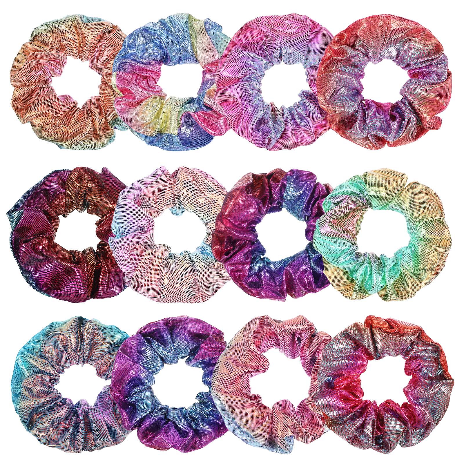 24 Pcs Scrunchies for Girls, Shiny Metallic Scrunchies Toddler Hair Accessories for Ponytail Holders Rainbow Hair Scrunchies Bulk for Girls Party Favors Halloween Accessories