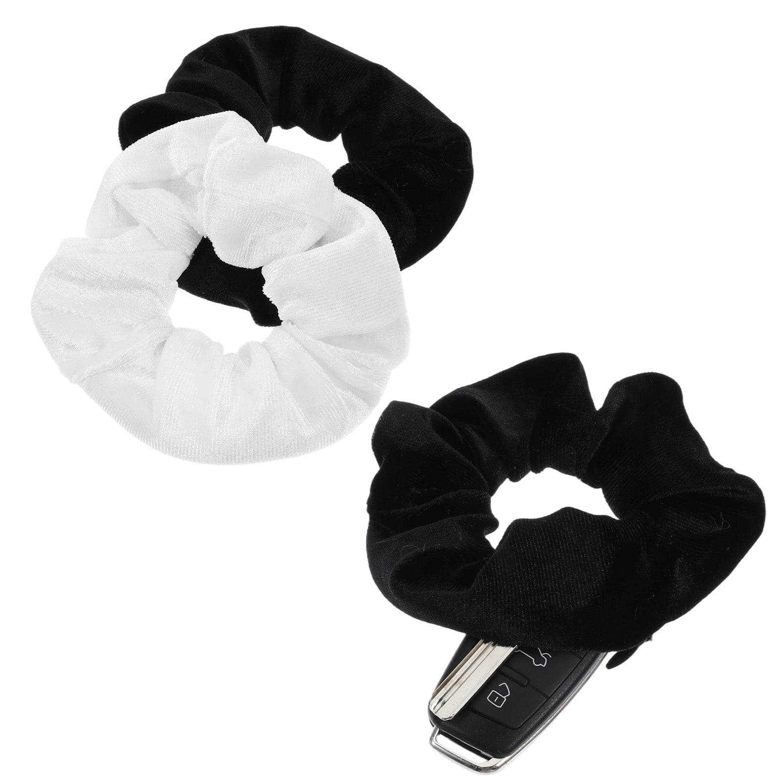 This practical set includes two elegant black scrunchies crafted from soft velvet material designed to be gentle on hair while providing secure hold for various hairstyles. The velvet exterior offers a luxurious alternative to standard nylon hair ties, potentially helping create frizz free hair management that reduces breakage and maintains hair health. Each 11cm scrunchie incorporates a discreet zippered compartment constructed with zinc alloy and PVC components, providing secure hidden storage for small essentials such as cash, keys, credit cards, or lipstick.