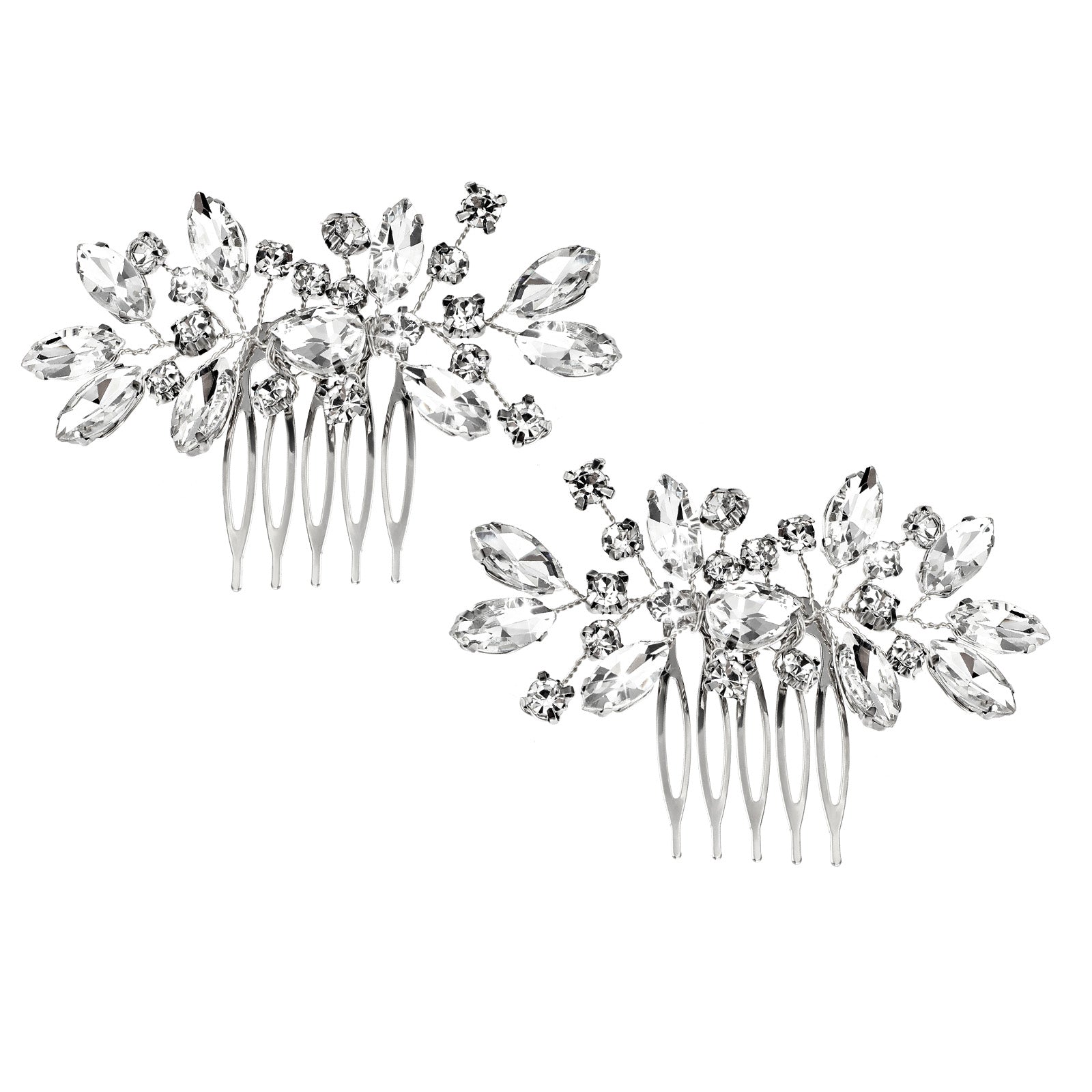 2Pcs Bridal Hair Accessories Wedding Hair Accessories Rhinestone Silver Piece Bridal Tiara Silver Flower Headpieces Combs Headband for Women and Girls